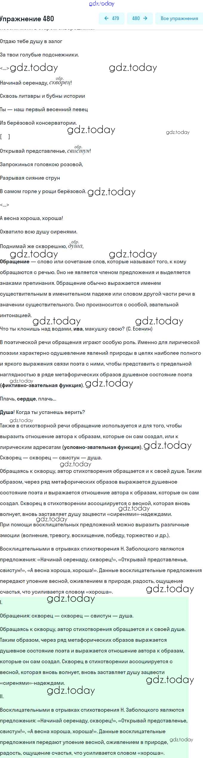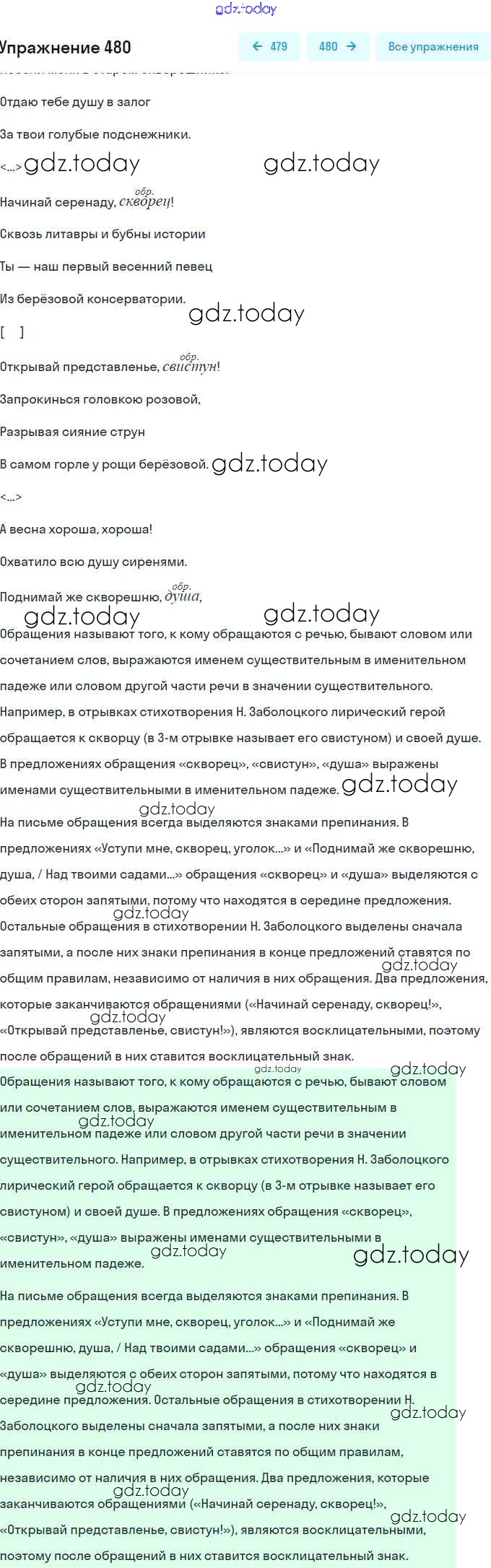 На страницах сайта gdz.today вы найдете учебный и вспомогательный материал, направленный на улучшения знаний школьной программы. ГДЗ - онлайн мир знаний Решение. Упражнения 480 Практике по Русскому языку для 8 класса Пичугов, Еремеева Дрофа, Дрофа Вертикаль 2016, 2022