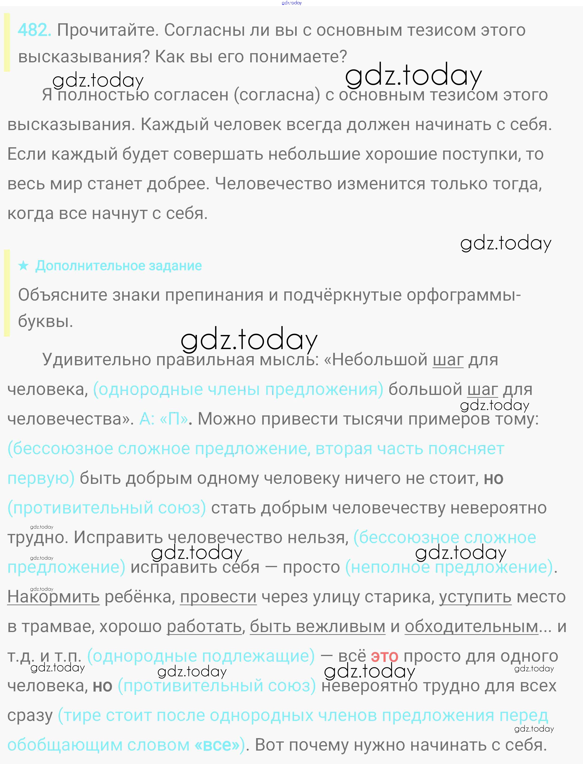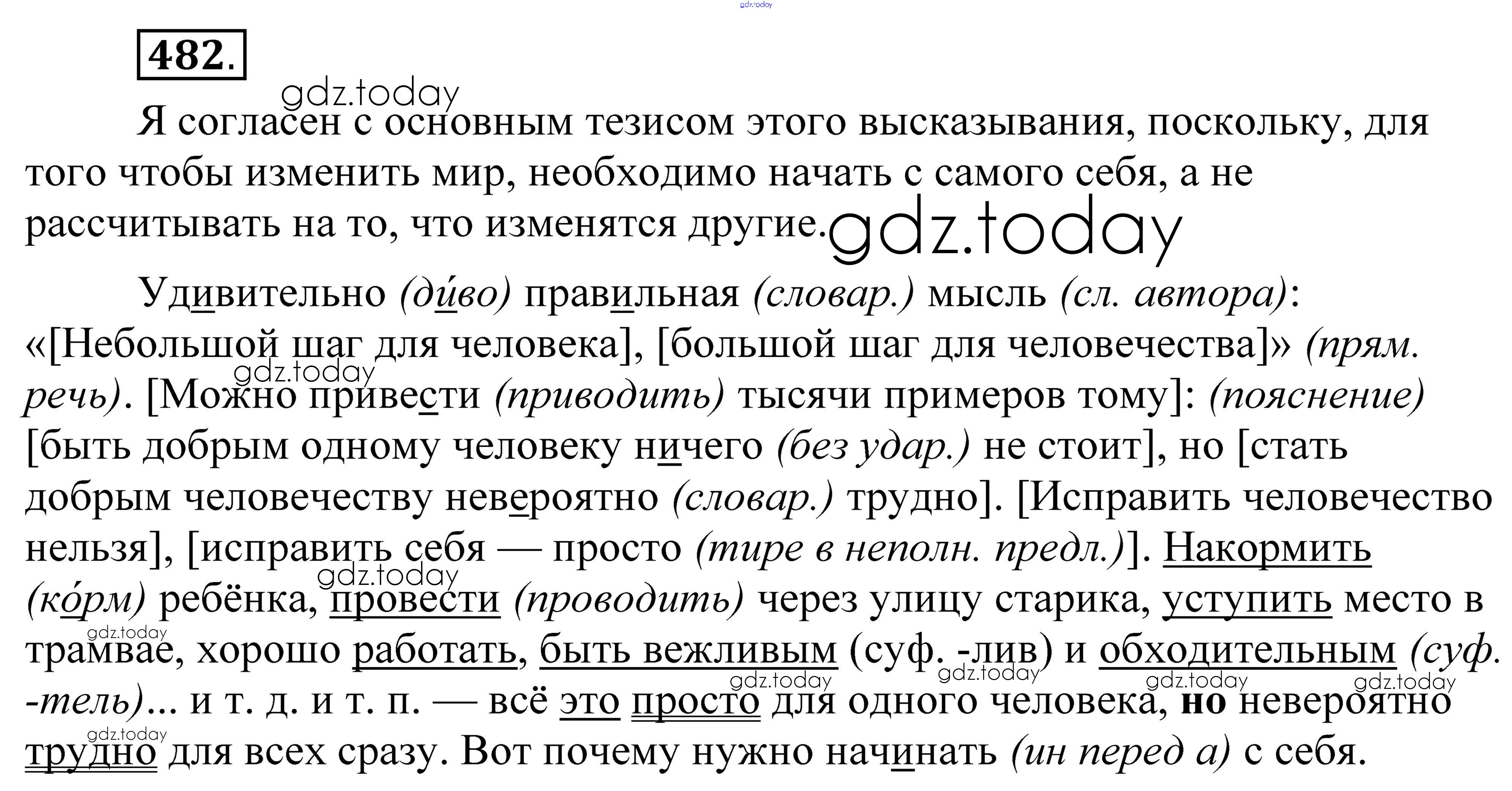 На страницах сайта gdz.today вы найдете учебный и вспомогательный материал, направленный на улучшения знаний школьной программы. ГДЗ - онлайн мир знаний Решение. Упражнения 482 Практике по Русскому языку для 8 класса Пичугов, Еремеева Дрофа, Дрофа Вертикаль 2016, 2022