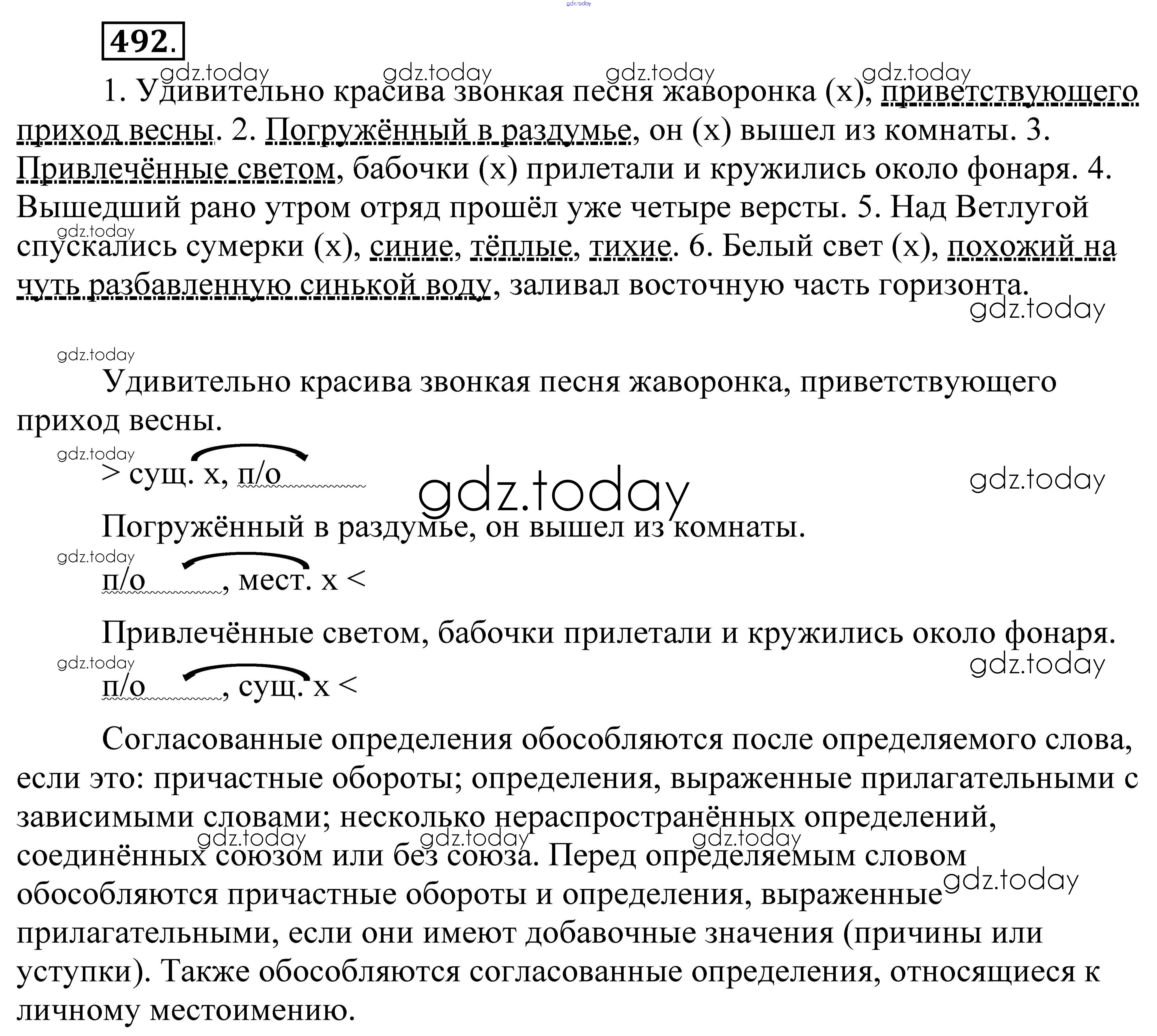 На страницах сайта gdz.today вы найдете учебный и вспомогательный материал, направленный на улучшения знаний школьной программы. ГДЗ - онлайн мир знаний Решение. Упражнения 492 Практике по Русскому языку для 8 класса Пичугов, Еремеева Дрофа, Дрофа Вертикаль 2016, 2022