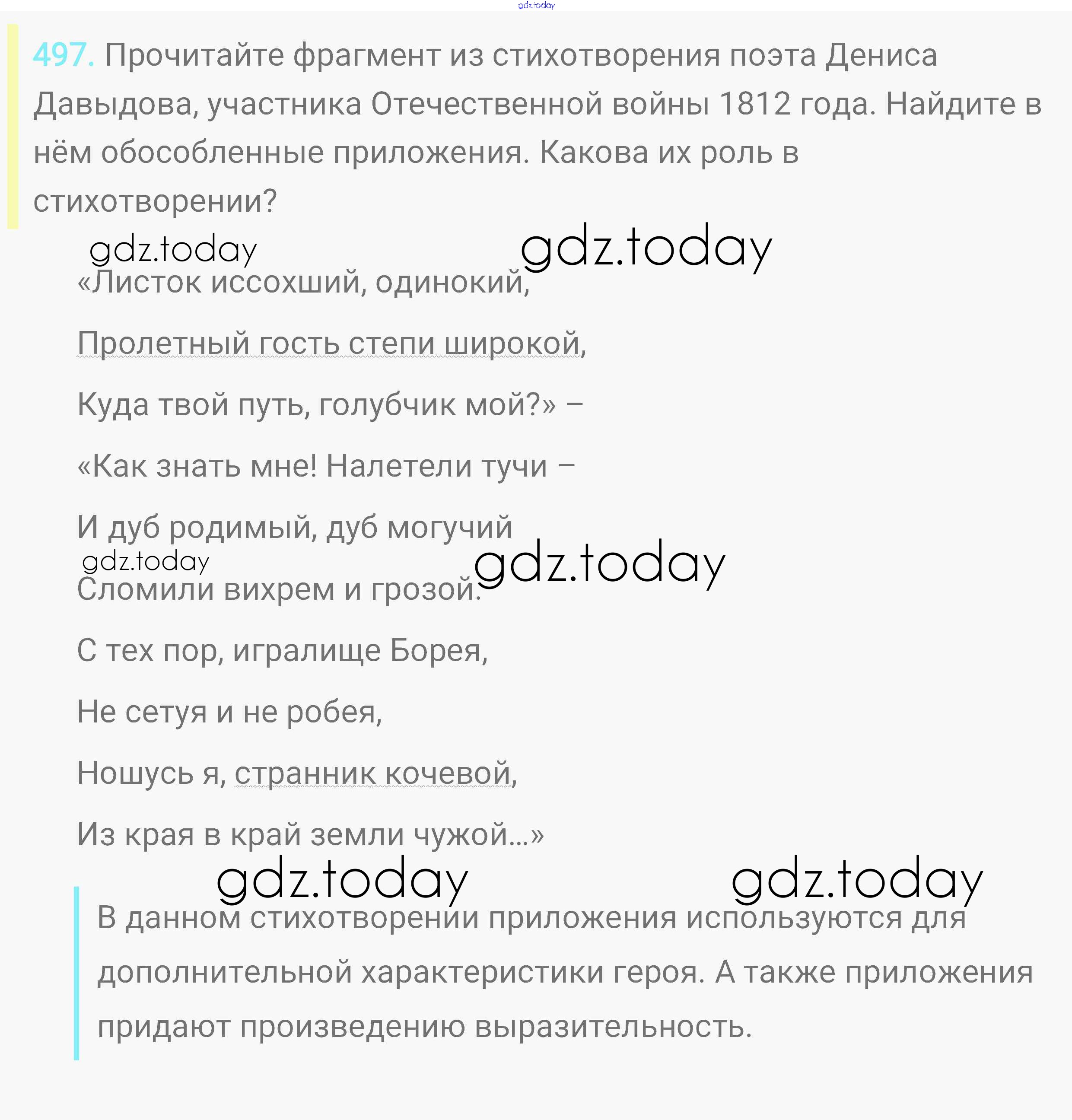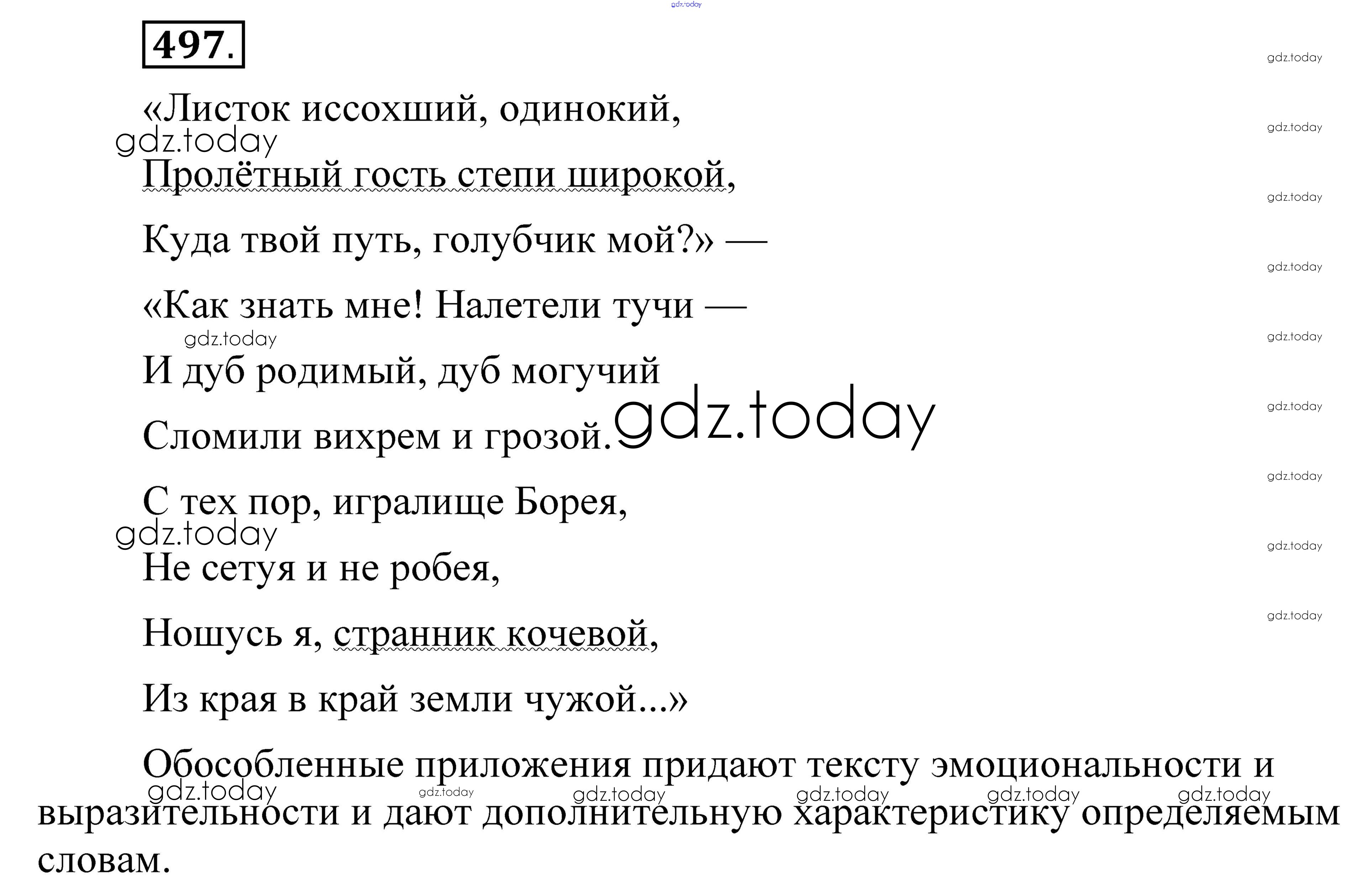 На страницах сайта gdz.today вы найдете учебный и вспомогательный материал, направленный на улучшения знаний школьной программы. ГДЗ - онлайн мир знаний Решение. Упражнения 497 Практике по Русскому языку для 8 класса Пичугов, Еремеева Дрофа, Дрофа Вертикаль 2016, 2022