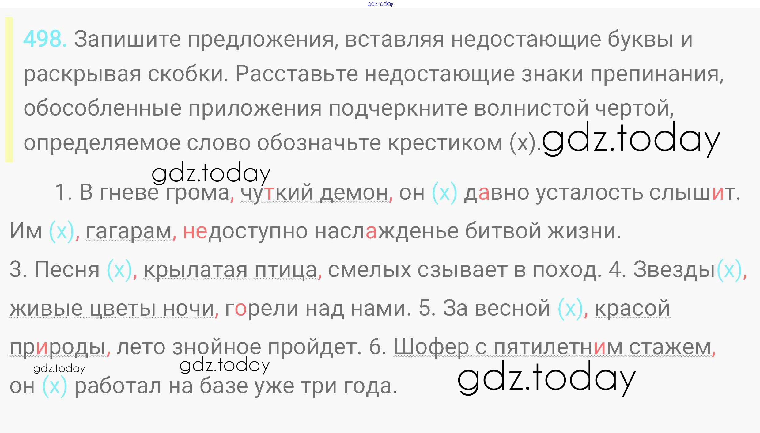 На страницах сайта gdz.today вы найдете учебный и вспомогательный материал, направленный на улучшения знаний школьной программы. ГДЗ - онлайн мир знаний Решение. Упражнения 498 Практике по Русскому языку для 8 класса Пичугов, Еремеева Дрофа, Дрофа Вертикаль 2016, 2022