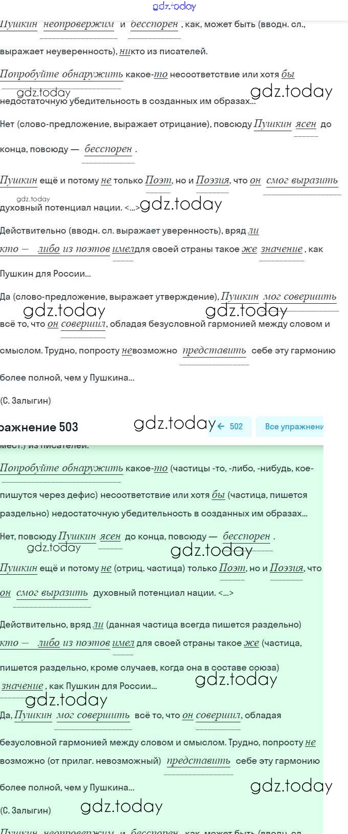На страницах сайта gdz.today вы найдете учебный и вспомогательный материал, направленный на улучшения знаний школьной программы. ГДЗ - онлайн мир знаний Решение. Упражнения 503 Практике по Русскому языку для 8 класса Пичугов, Еремеева Дрофа, Дрофа Вертикаль 2016, 2022