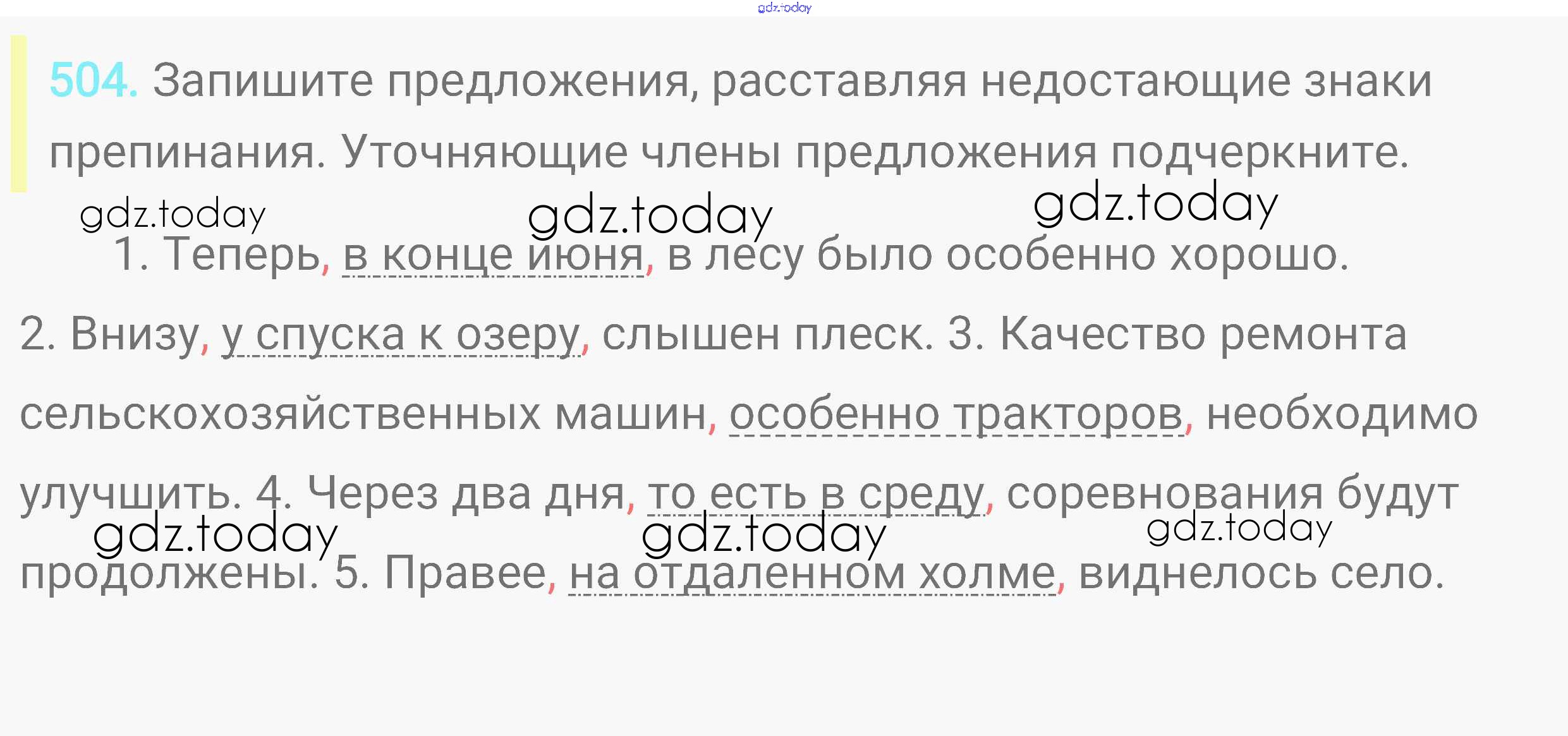 На страницах сайта gdz.today вы найдете учебный и вспомогательный материал, направленный на улучшения знаний школьной программы. ГДЗ - онлайн мир знаний Решение. Упражнения 504 Практике по Русскому языку для 8 класса Пичугов, Еремеева Дрофа, Дрофа Вертикаль 2016, 2022