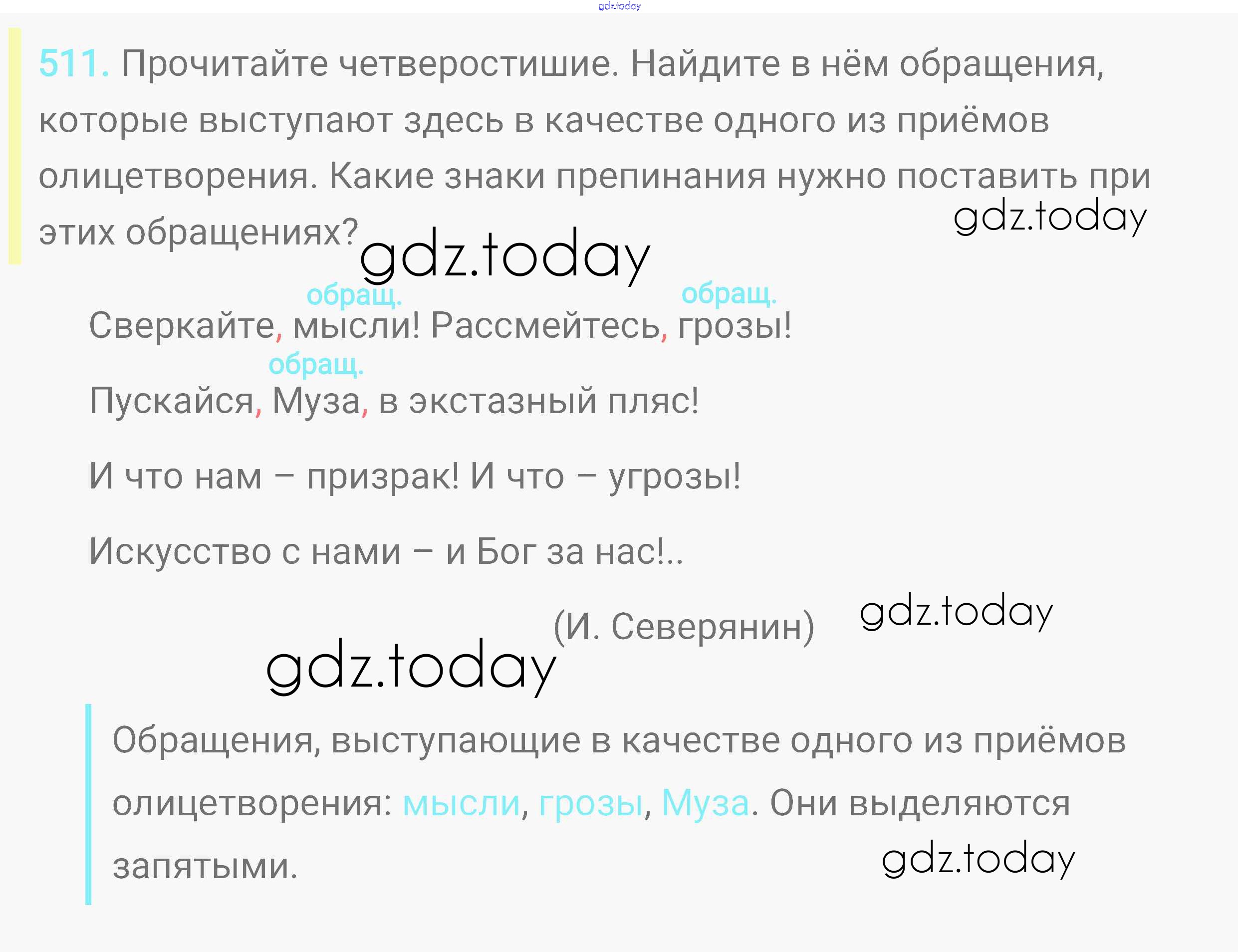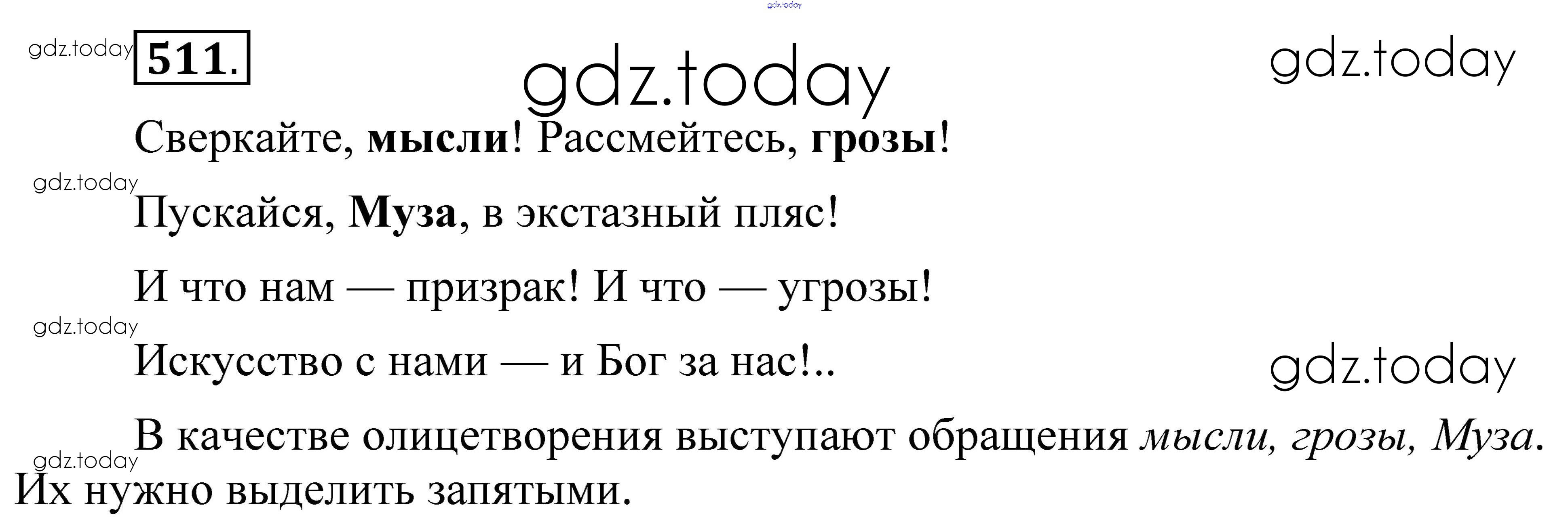 На страницах сайта gdz.today вы найдете учебный и вспомогательный материал, направленный на улучшения знаний школьной программы. ГДЗ - онлайн мир знаний Решение. Упражнения 511 Практике по Русскому языку для 8 класса Пичугов, Еремеева Дрофа, Дрофа Вертикаль 2016, 2022