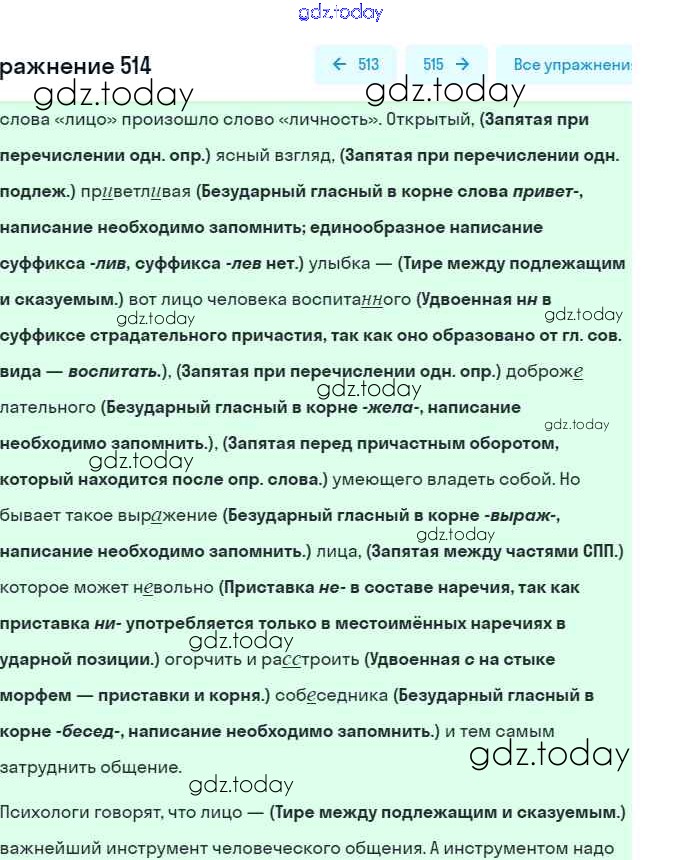 На страницах сайта gdz.today вы найдете учебный и вспомогательный материал, направленный на улучшения знаний школьной программы. ГДЗ - онлайн мир знаний Решение. Упражнения 514 Практике по Русскому языку для 8 класса Пичугов, Еремеева Дрофа, Дрофа Вертикаль 2016, 2022
