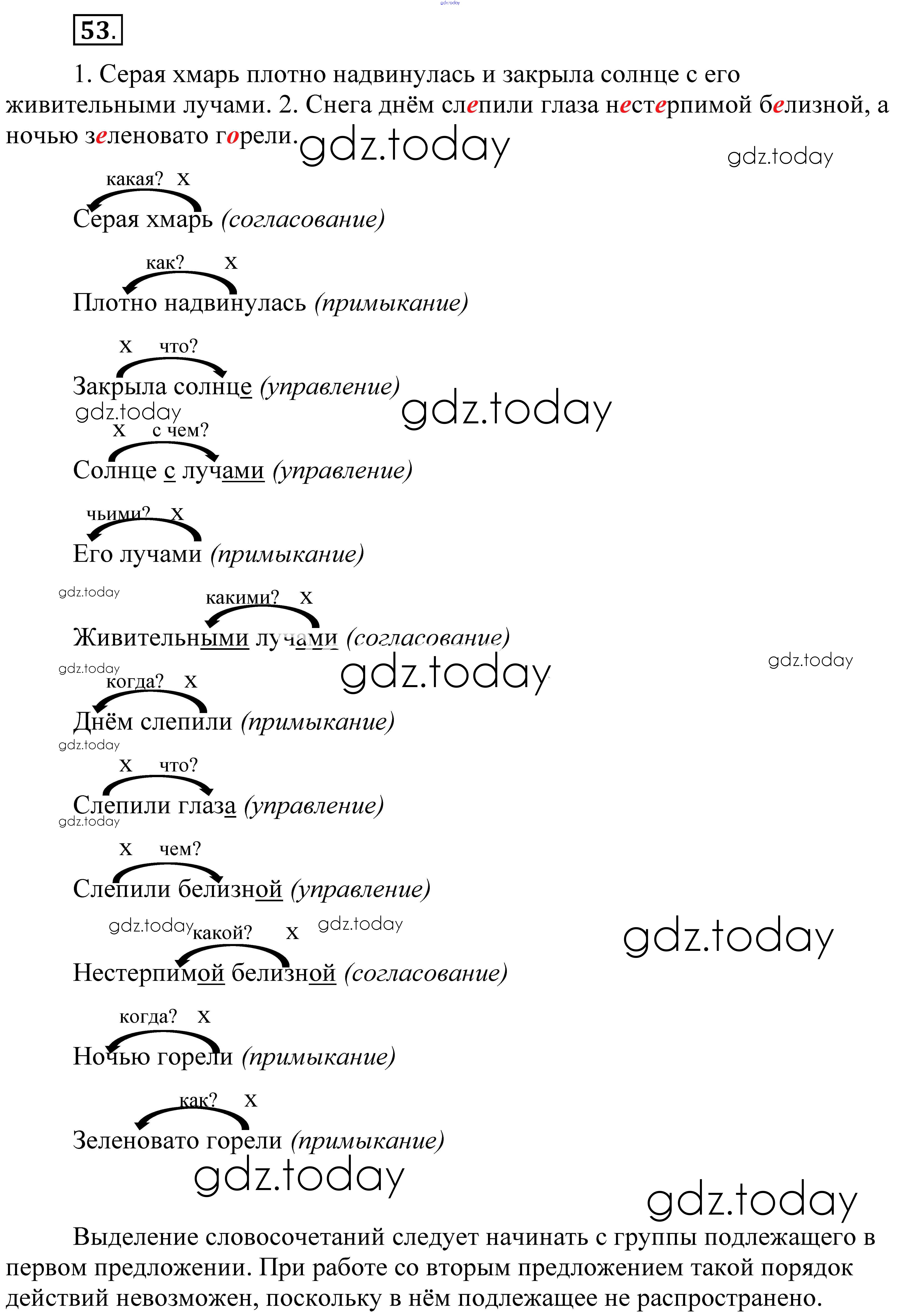 На страницах сайта gdz.today вы найдете учебный и вспомогательный материал, направленный на улучшения знаний школьной программы. ГДЗ - онлайн мир знаний Решение. Упражнения 53 Практике по Русскому языку для 8 класса Пичугов, Еремеева Дрофа, Дрофа Вертикаль 2016, 2022
