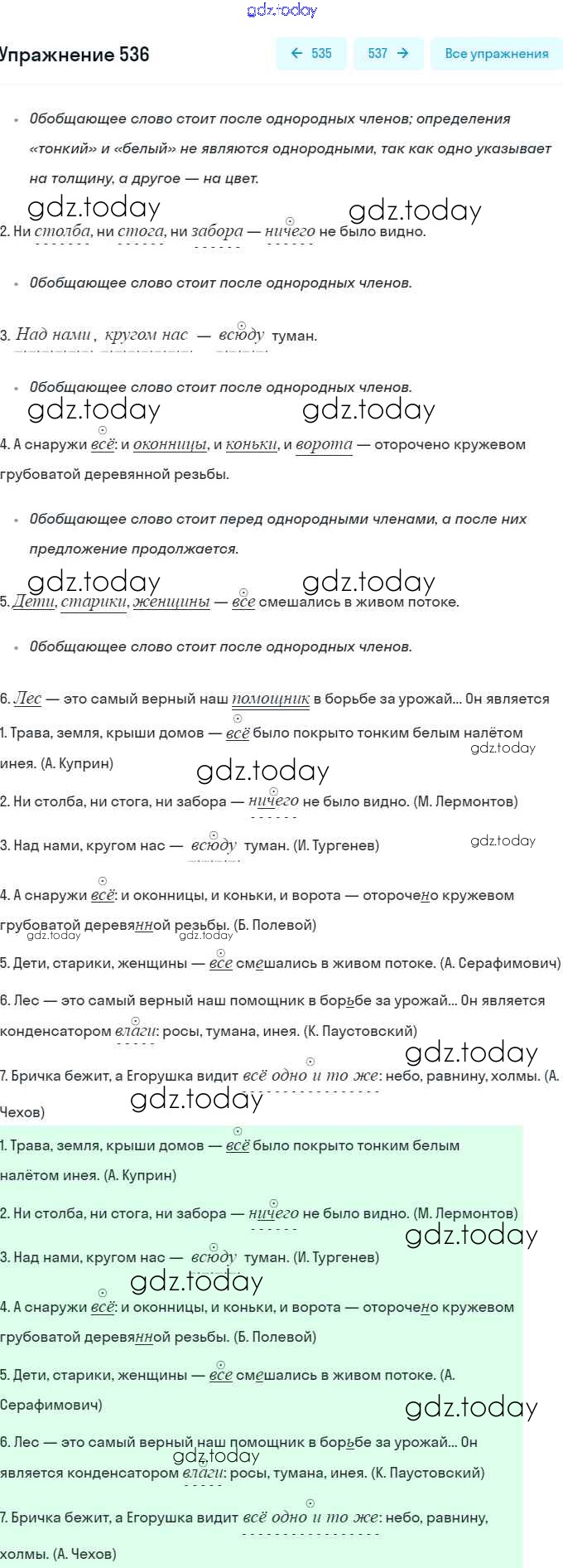 На страницах сайта gdz.today вы найдете учебный и вспомогательный материал, направленный на улучшения знаний школьной программы. ГДЗ - онлайн мир знаний Решение. Упражнения 536 Практике по Русскому языку для 8 класса Пичугов, Еремеева Дрофа, Дрофа Вертикаль 2016, 2022