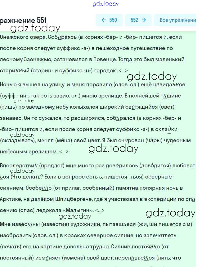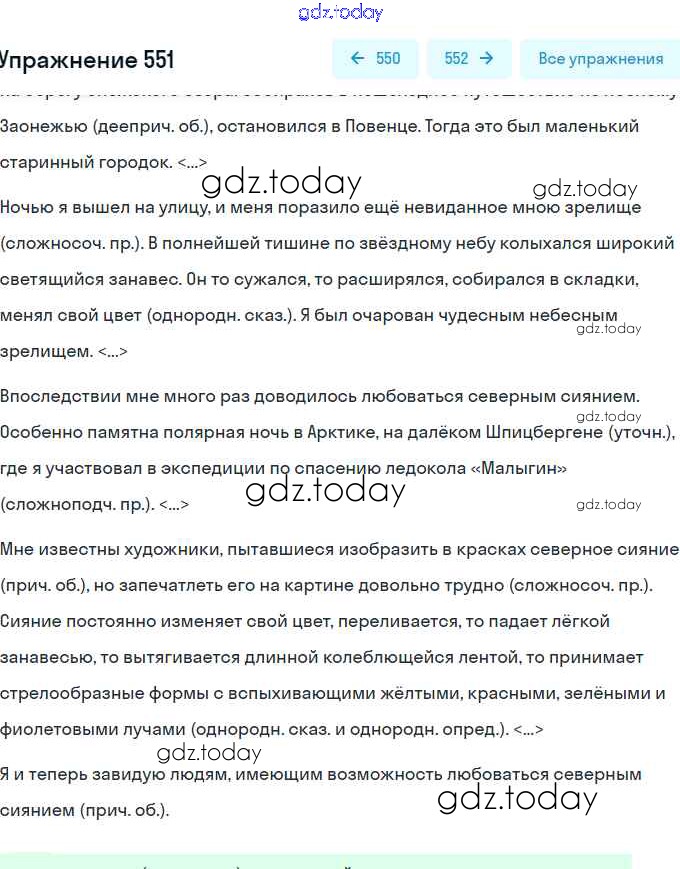 На страницах сайта gdz.today вы найдете учебный и вспомогательный материал, направленный на улучшения знаний школьной программы. ГДЗ - онлайн мир знаний Решение. Упражнения 551 Практике по Русскому языку для 8 класса Пичугов, Еремеева Дрофа, Дрофа Вертикаль 2016, 2022