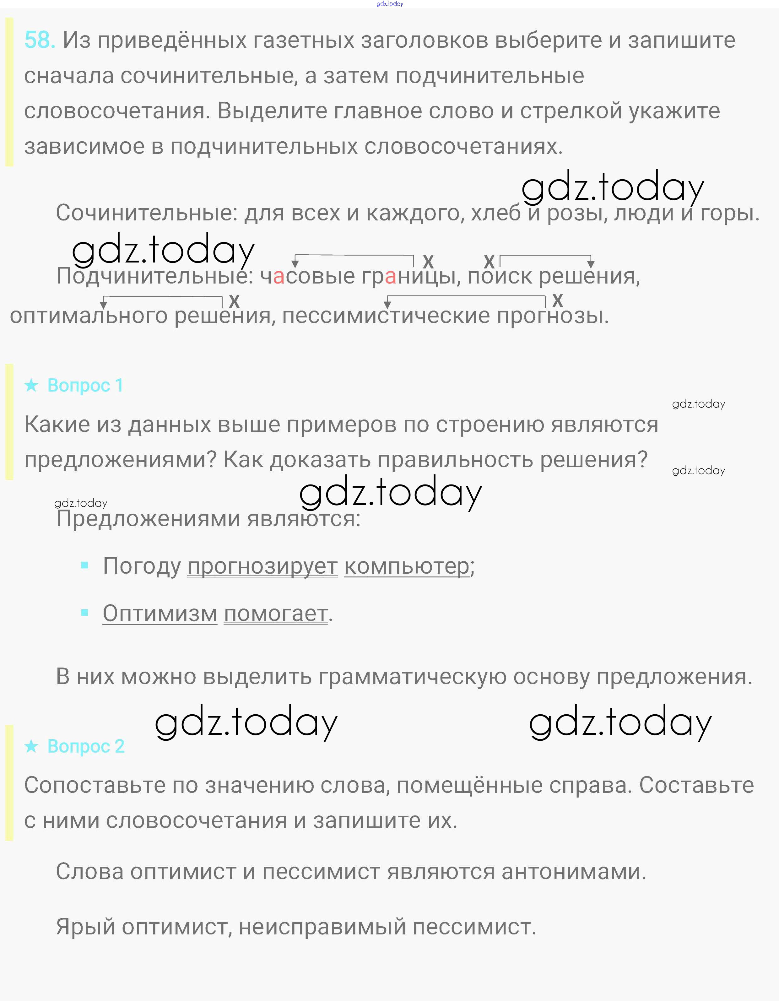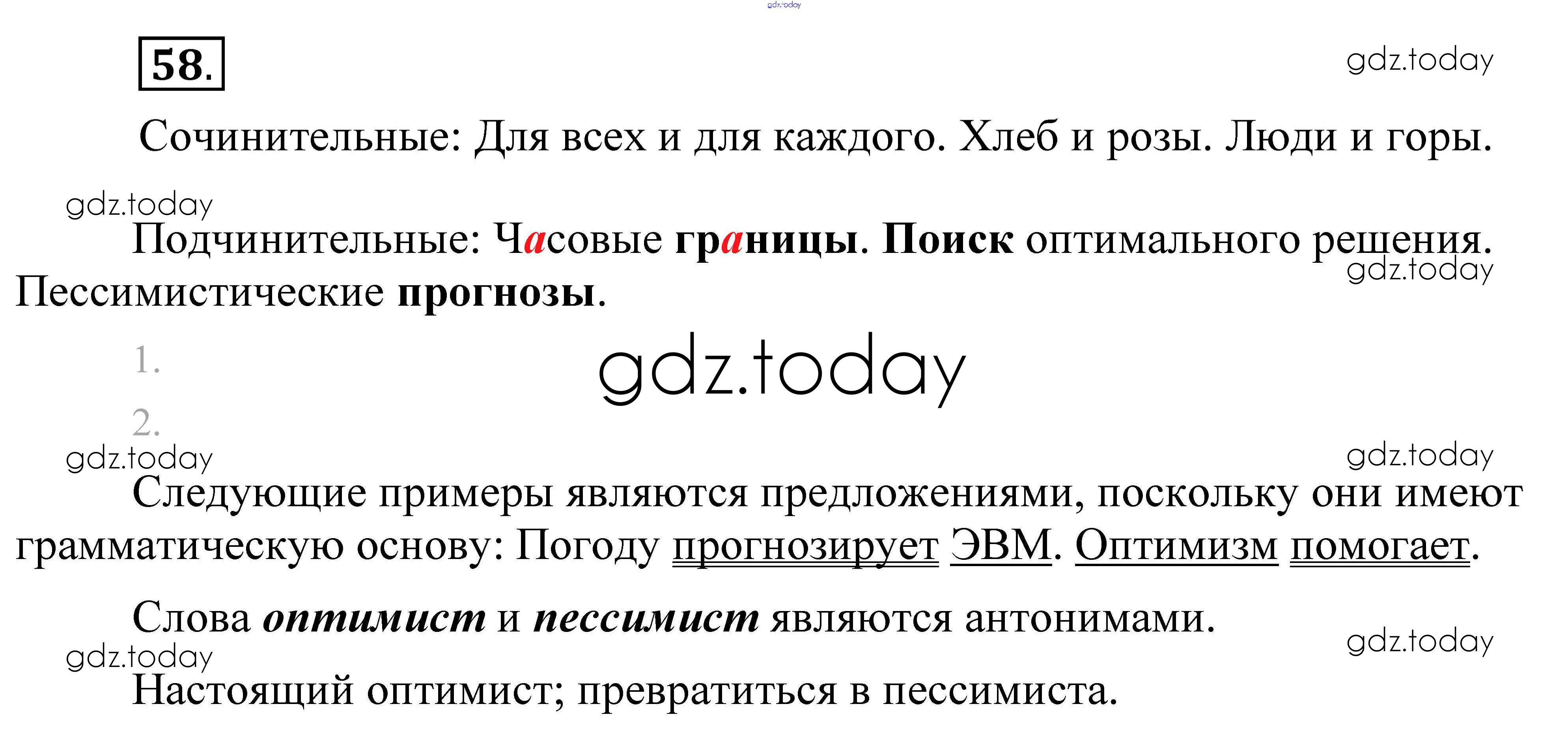 На страницах сайта gdz.today вы найдете учебный и вспомогательный материал, направленный на улучшения знаний школьной программы. ГДЗ - онлайн мир знаний Решение. Упражнения 58 Практике по Русскому языку для 8 класса Пичугов, Еремеева Дрофа, Дрофа Вертикаль 2016, 2022