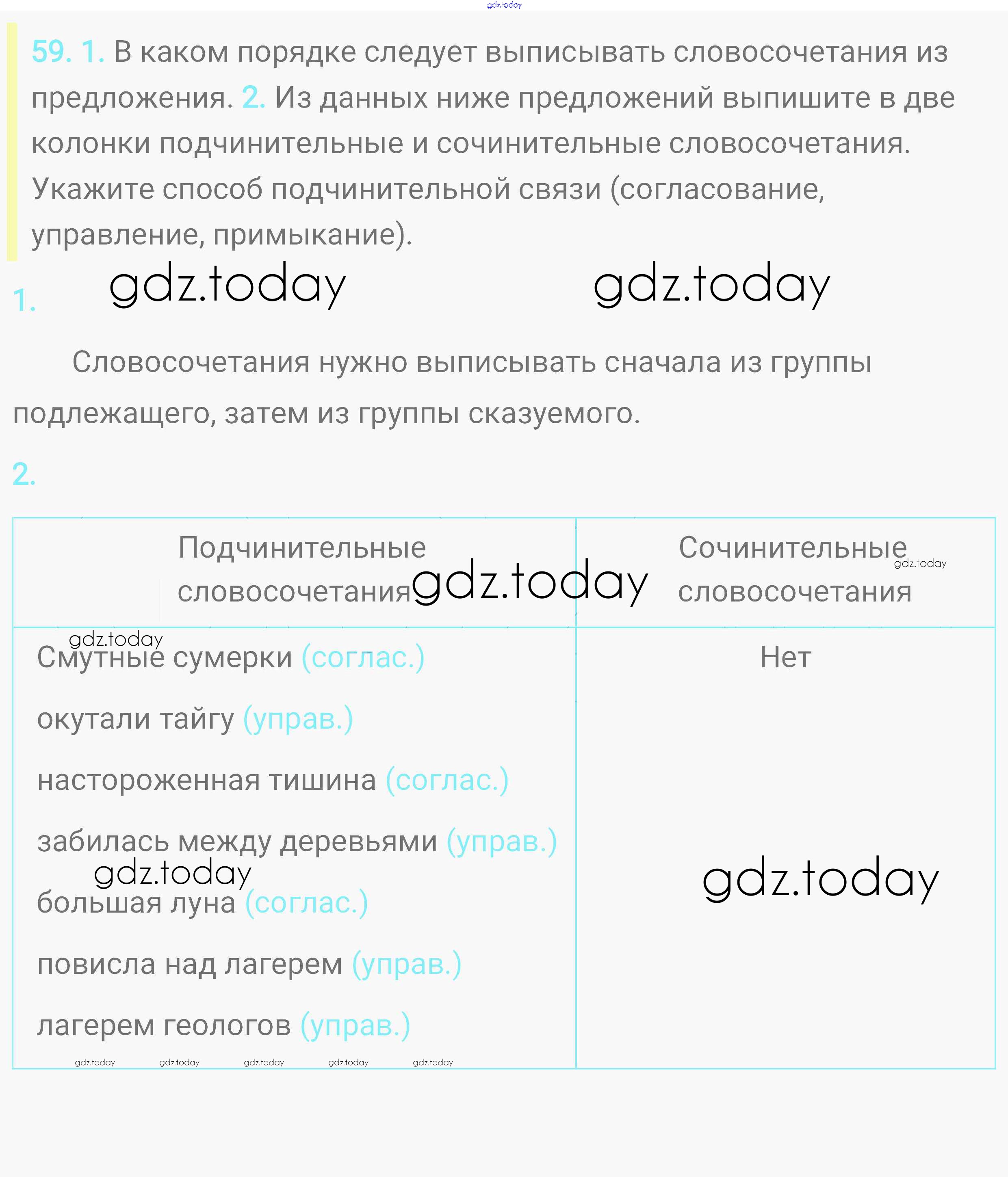 На страницах сайта gdz.today вы найдете учебный и вспомогательный материал, направленный на улучшения знаний школьной программы. ГДЗ - онлайн мир знаний Решение. Упражнения 59 Практике по Русскому языку для 8 класса Пичугов, Еремеева Дрофа, Дрофа Вертикаль 2016, 2022