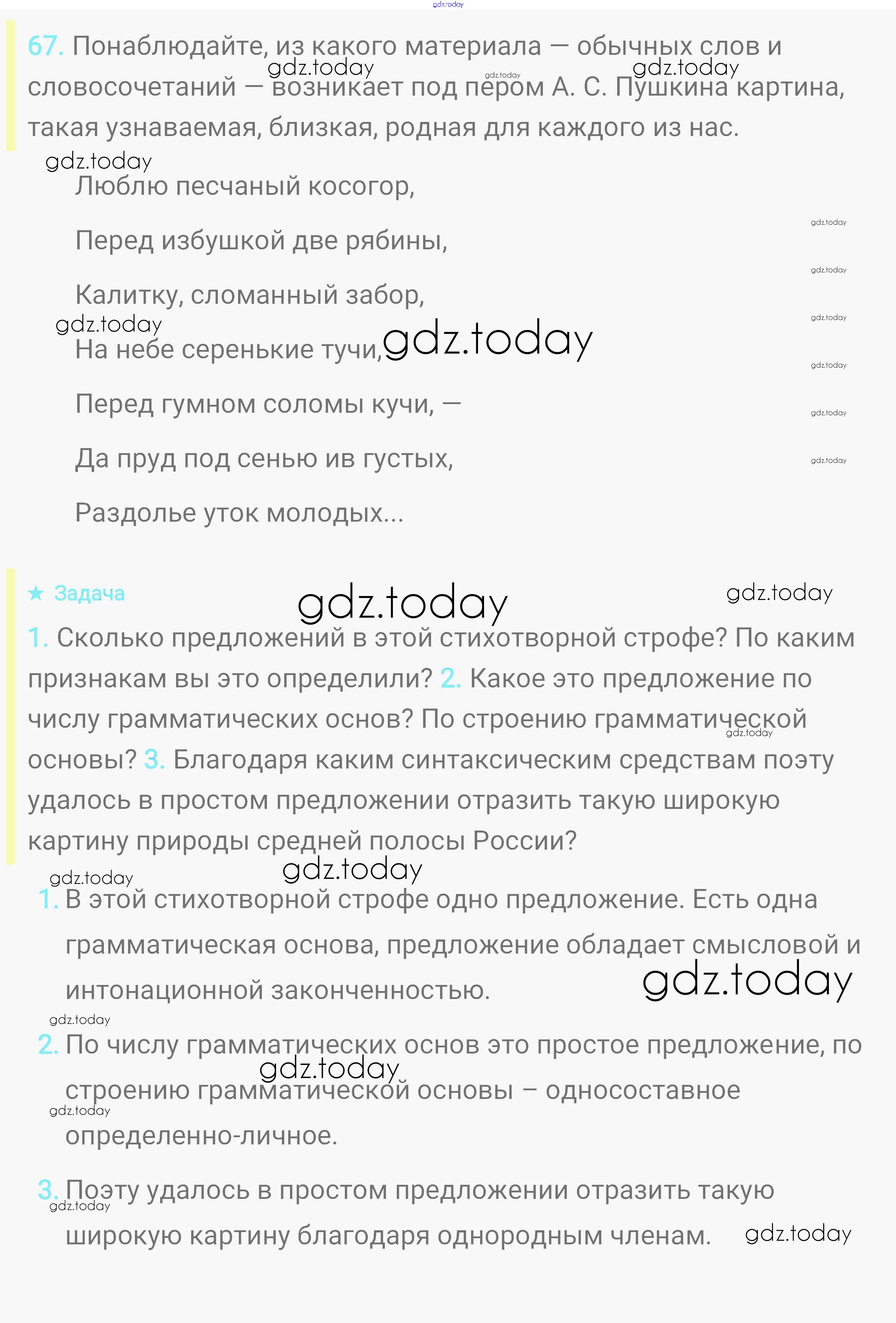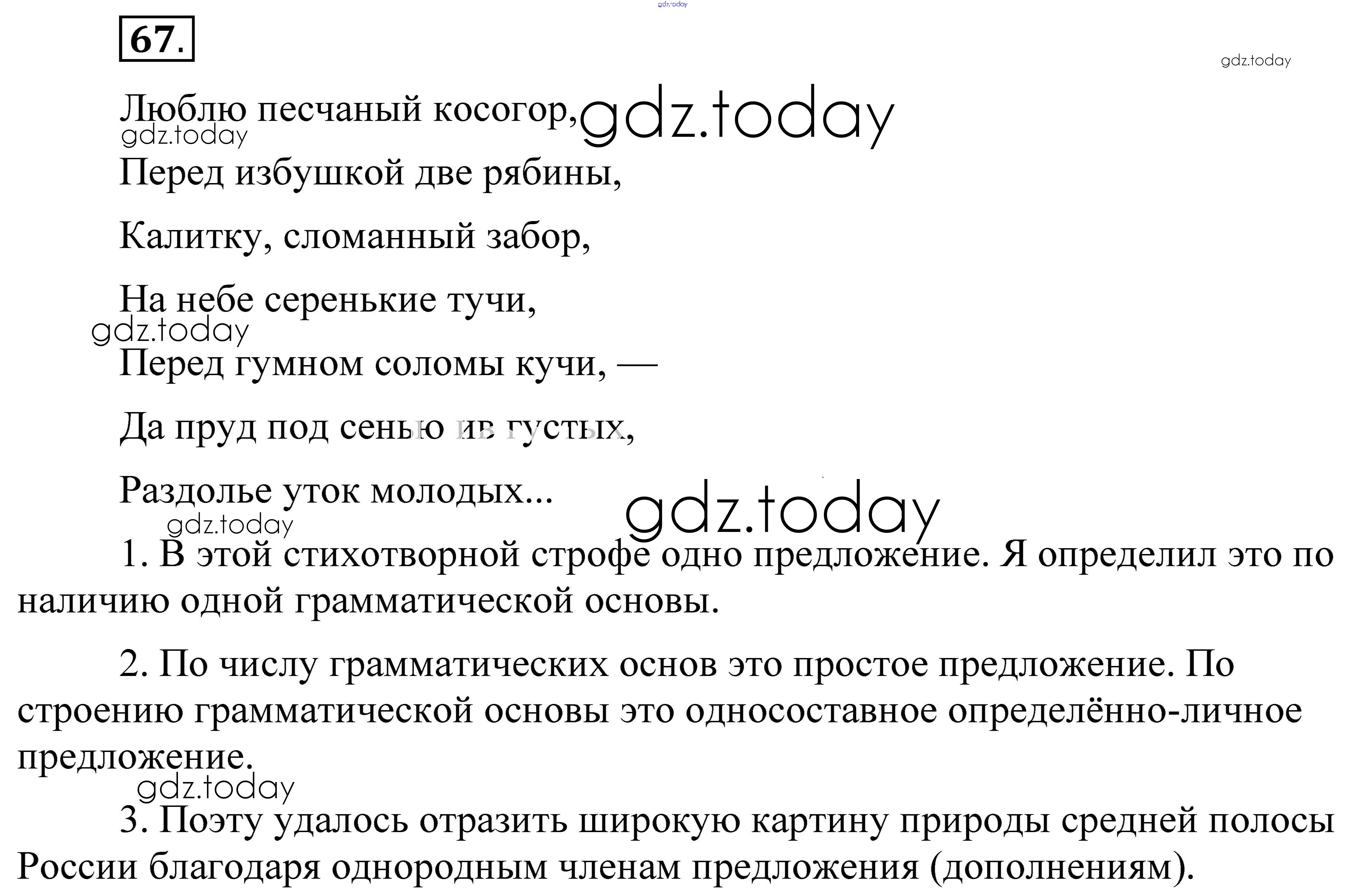 На страницах сайта gdz.today вы найдете учебный и вспомогательный материал, направленный на улучшения знаний школьной программы. ГДЗ - онлайн мир знаний Решение. Упражнения 67 Практике по Русскому языку для 8 класса Пичугов, Еремеева Дрофа, Дрофа Вертикаль 2016, 2022