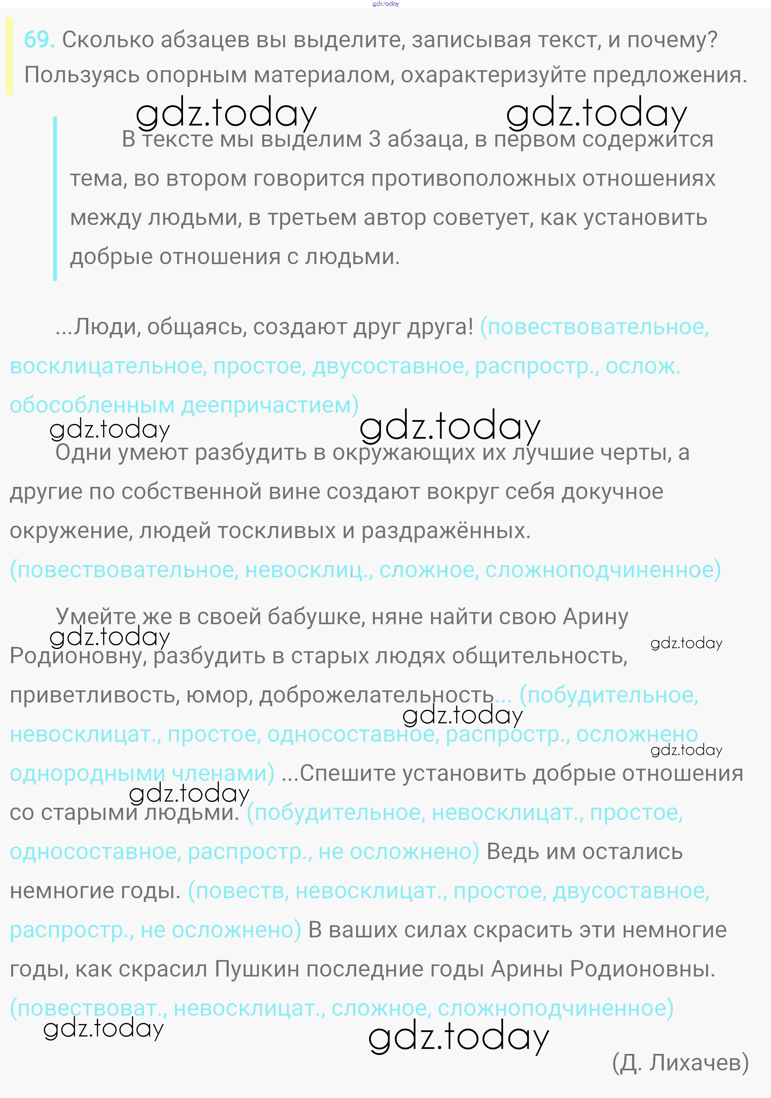 На страницах сайта gdz.today вы найдете учебный и вспомогательный материал, направленный на улучшения знаний школьной программы. ГДЗ - онлайн мир знаний Решение. Упражнения 69 Практике по Русскому языку для 8 класса Пичугов, Еремеева Дрофа, Дрофа Вертикаль 2016, 2022