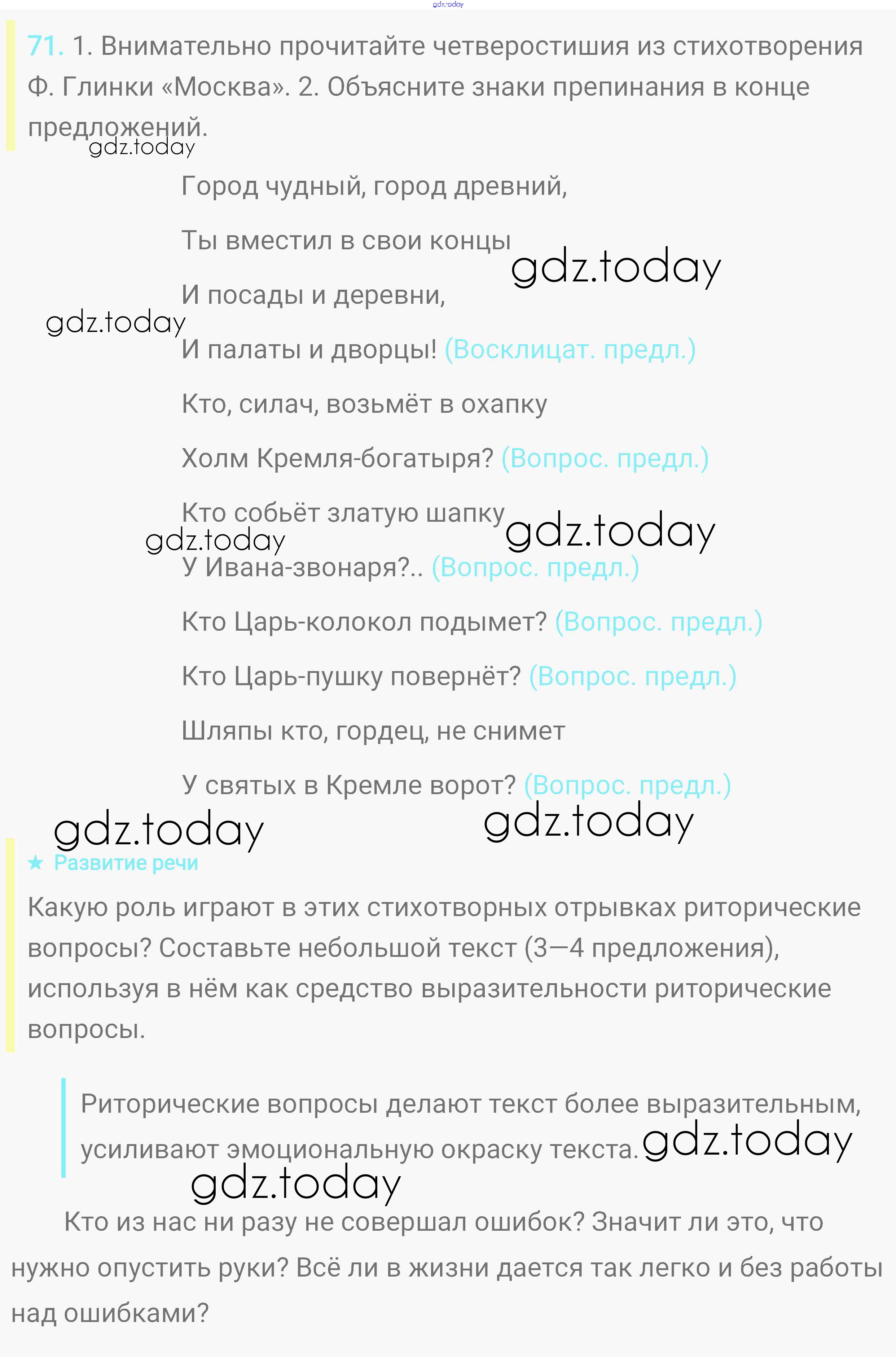 На страницах сайта gdz.today вы найдете учебный и вспомогательный материал, направленный на улучшения знаний школьной программы. ГДЗ - онлайн мир знаний Решение. Упражнения 71 Практике по Русскому языку для 8 класса Пичугов, Еремеева Дрофа, Дрофа Вертикаль 2016, 2022