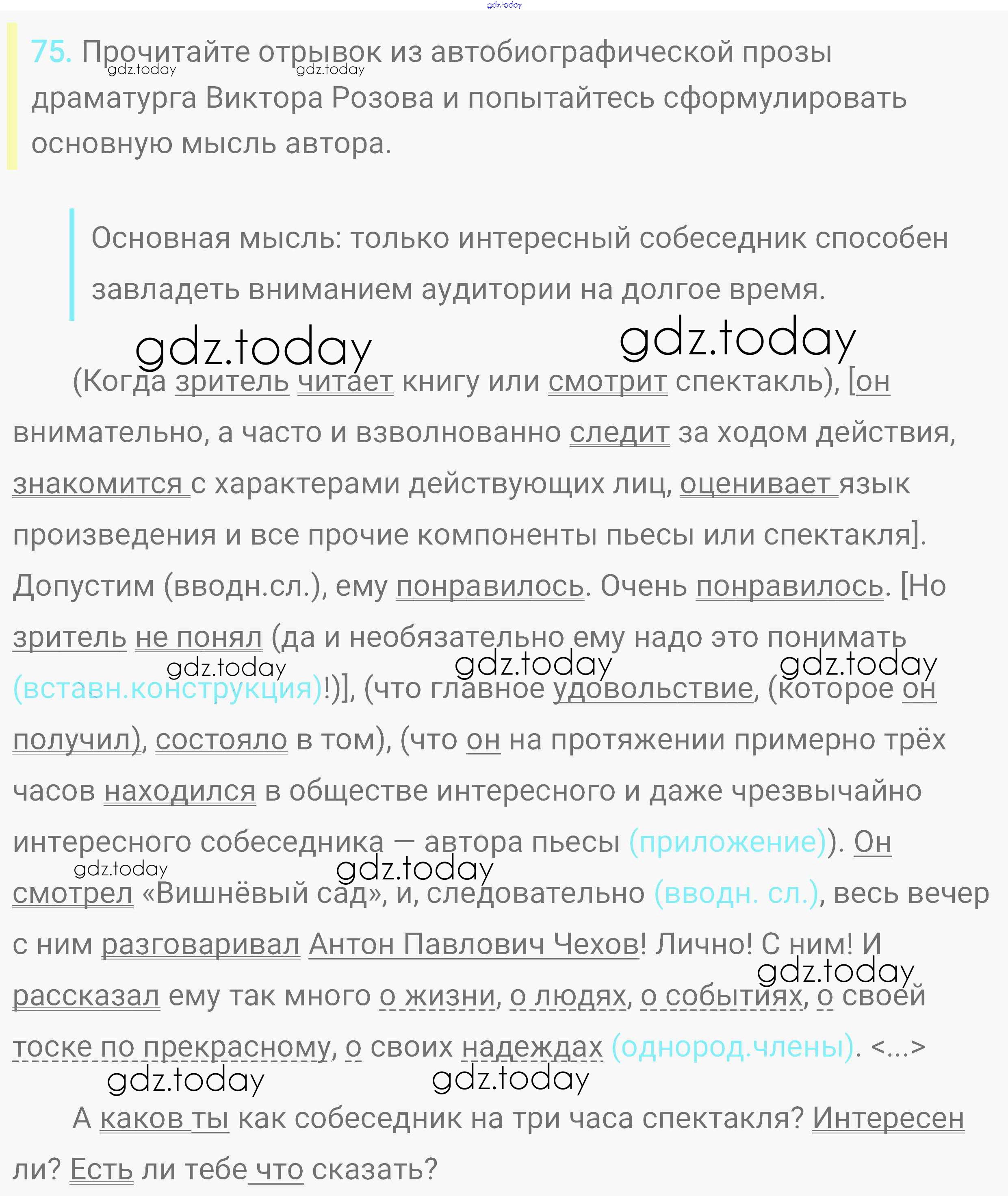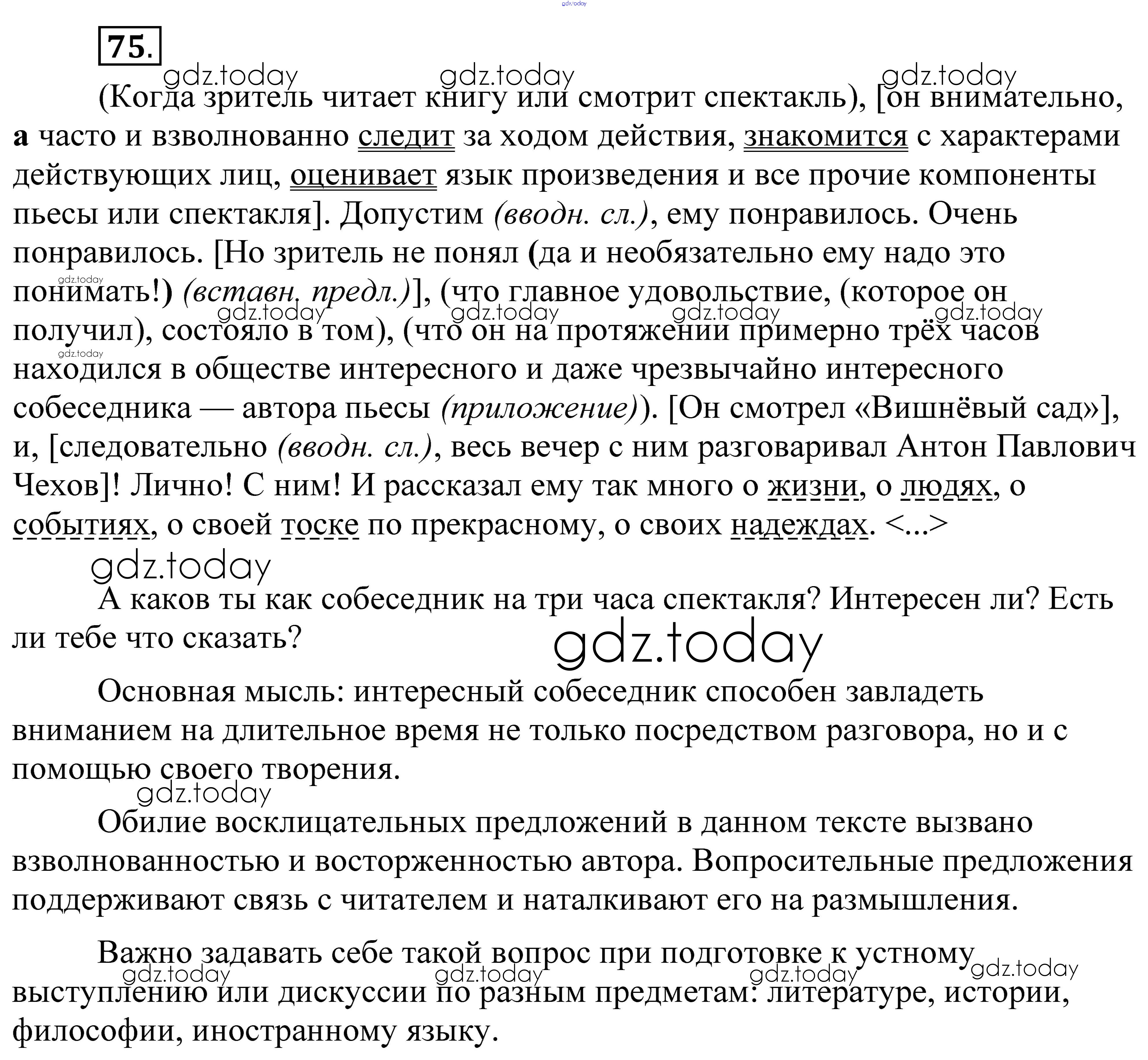 На страницах сайта gdz.today вы найдете учебный и вспомогательный материал, направленный на улучшения знаний школьной программы. ГДЗ - онлайн мир знаний Решение. Упражнения 75 Практике по Русскому языку для 8 класса Пичугов, Еремеева Дрофа, Дрофа Вертикаль 2016, 2022