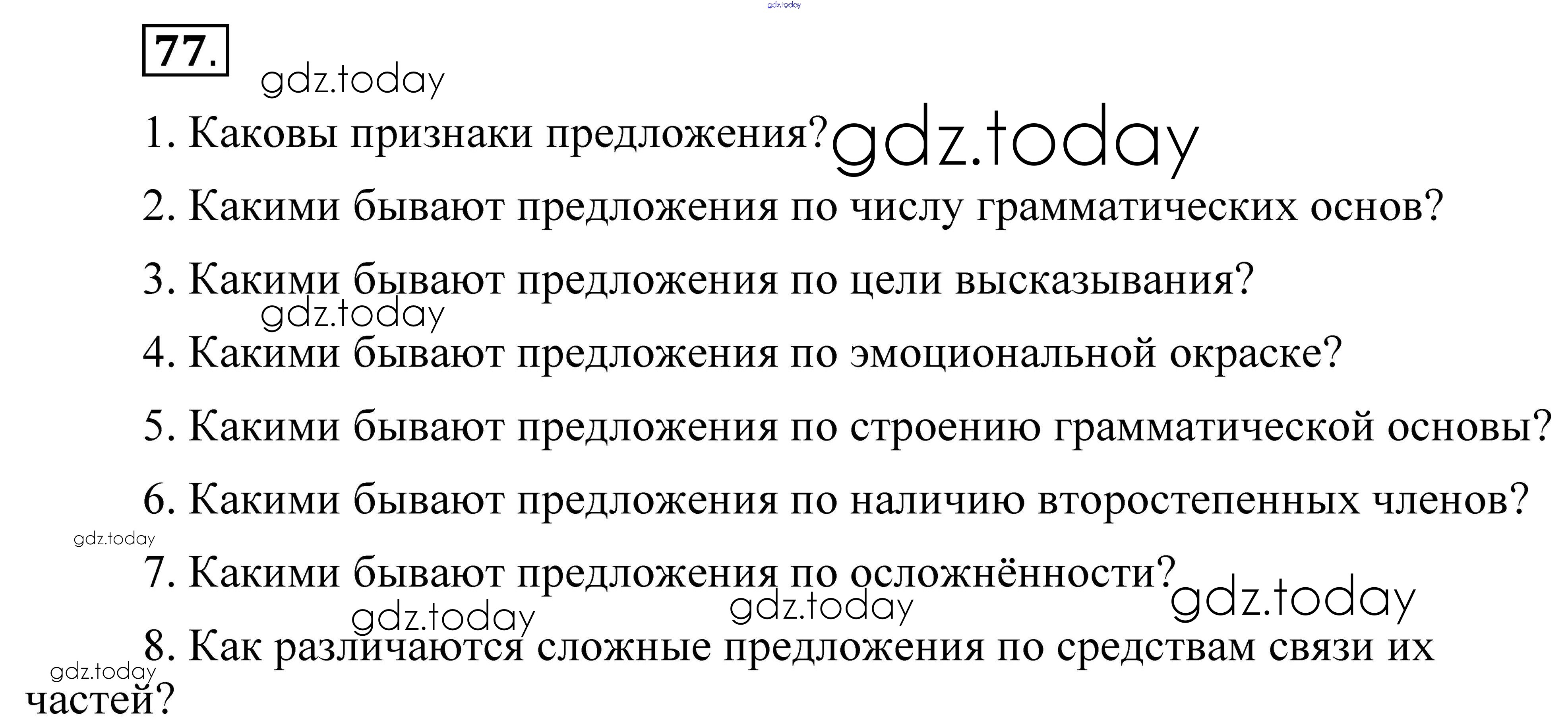На страницах сайта gdz.today вы найдете учебный и вспомогательный материал, направленный на улучшения знаний школьной программы. ГДЗ - онлайн мир знаний Решение. Упражнения 77 Практике по Русскому языку для 8 класса Пичугов, Еремеева Дрофа, Дрофа Вертикаль 2016, 2022