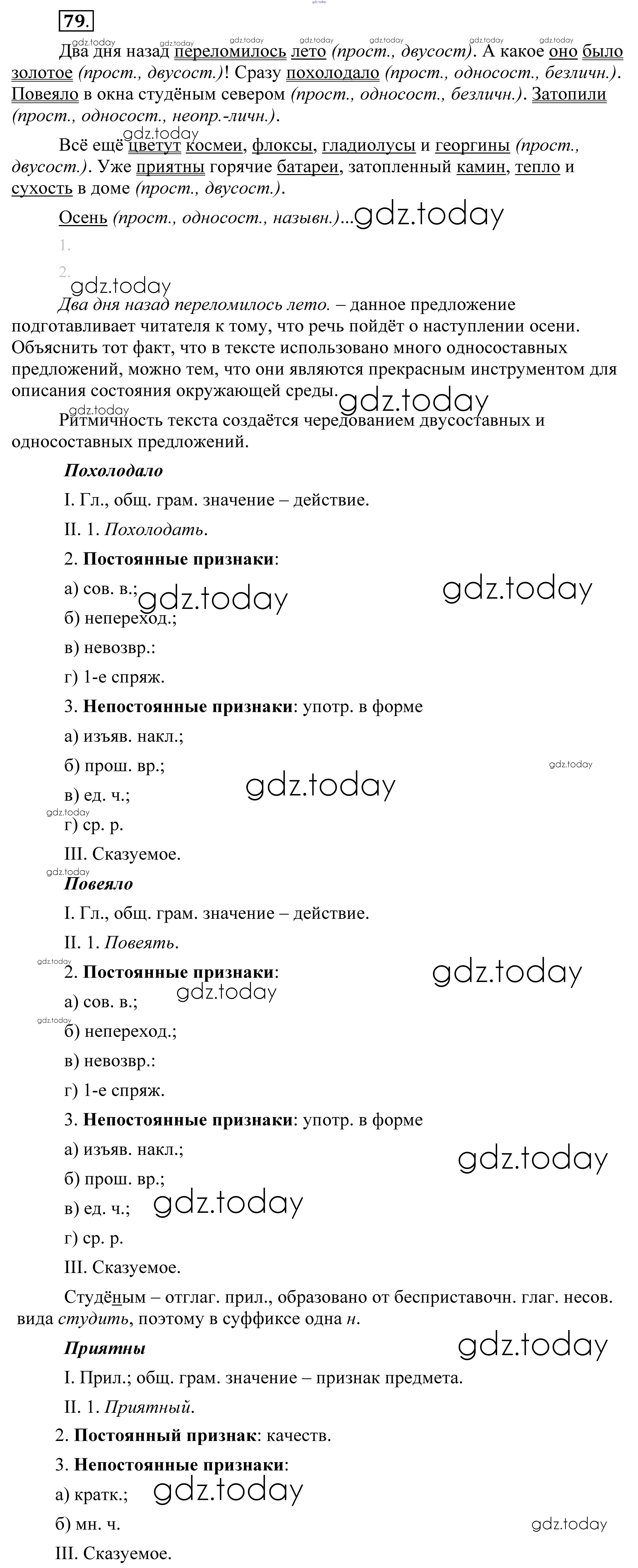 На страницах сайта gdz.today вы найдете учебный и вспомогательный материал, направленный на улучшения знаний школьной программы. ГДЗ - онлайн мир знаний Решение. Упражнения 79 Практике по Русскому языку для 8 класса Пичугов, Еремеева Дрофа, Дрофа Вертикаль 2016, 2022