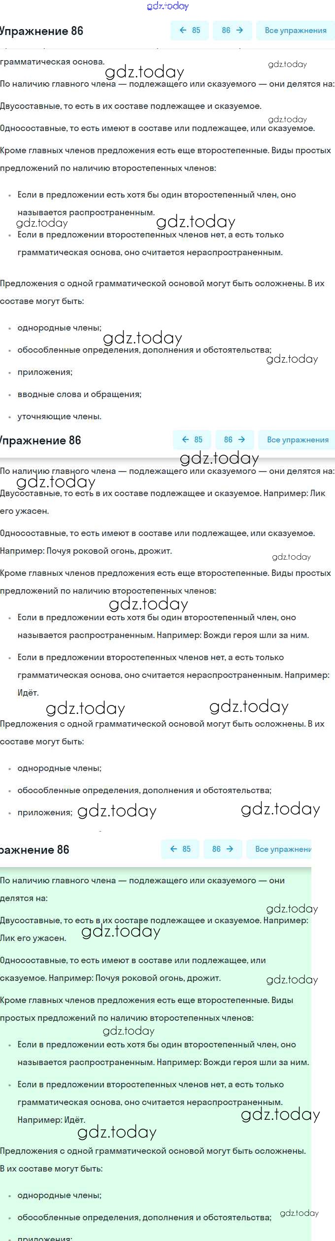 На страницах сайта gdz.today вы найдете учебный и вспомогательный материал, направленный на улучшения знаний школьной программы. ГДЗ - онлайн мир знаний Решение. Упражнения 86 Практике по Русскому языку для 8 класса Пичугов, Еремеева Дрофа, Дрофа Вертикаль 2016, 2022