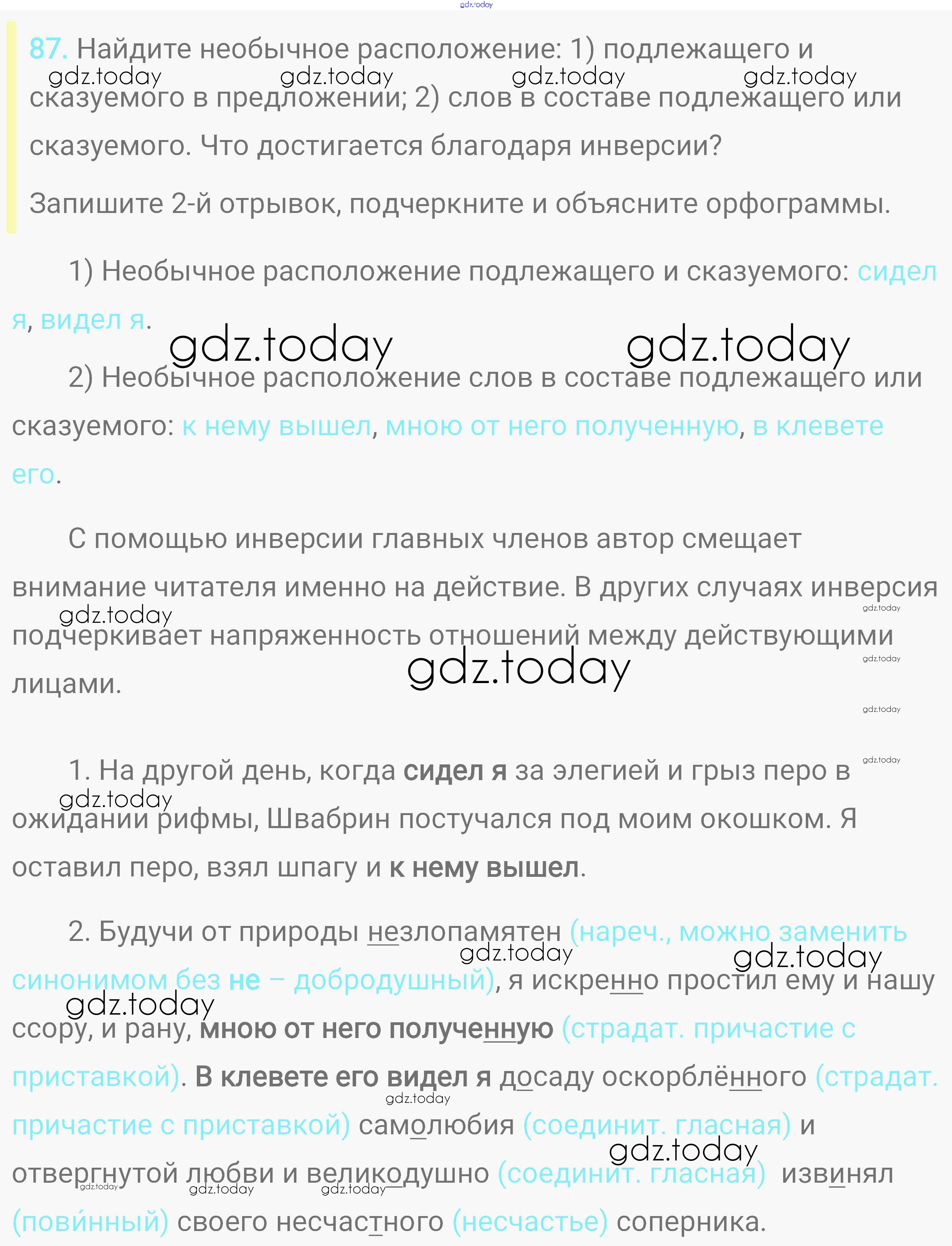 На страницах сайта gdz.today вы найдете учебный и вспомогательный материал, направленный на улучшения знаний школьной программы. ГДЗ - онлайн мир знаний Решение. Упражнения 87 Практике по Русскому языку для 8 класса Пичугов, Еремеева Дрофа, Дрофа Вертикаль 2016, 2022