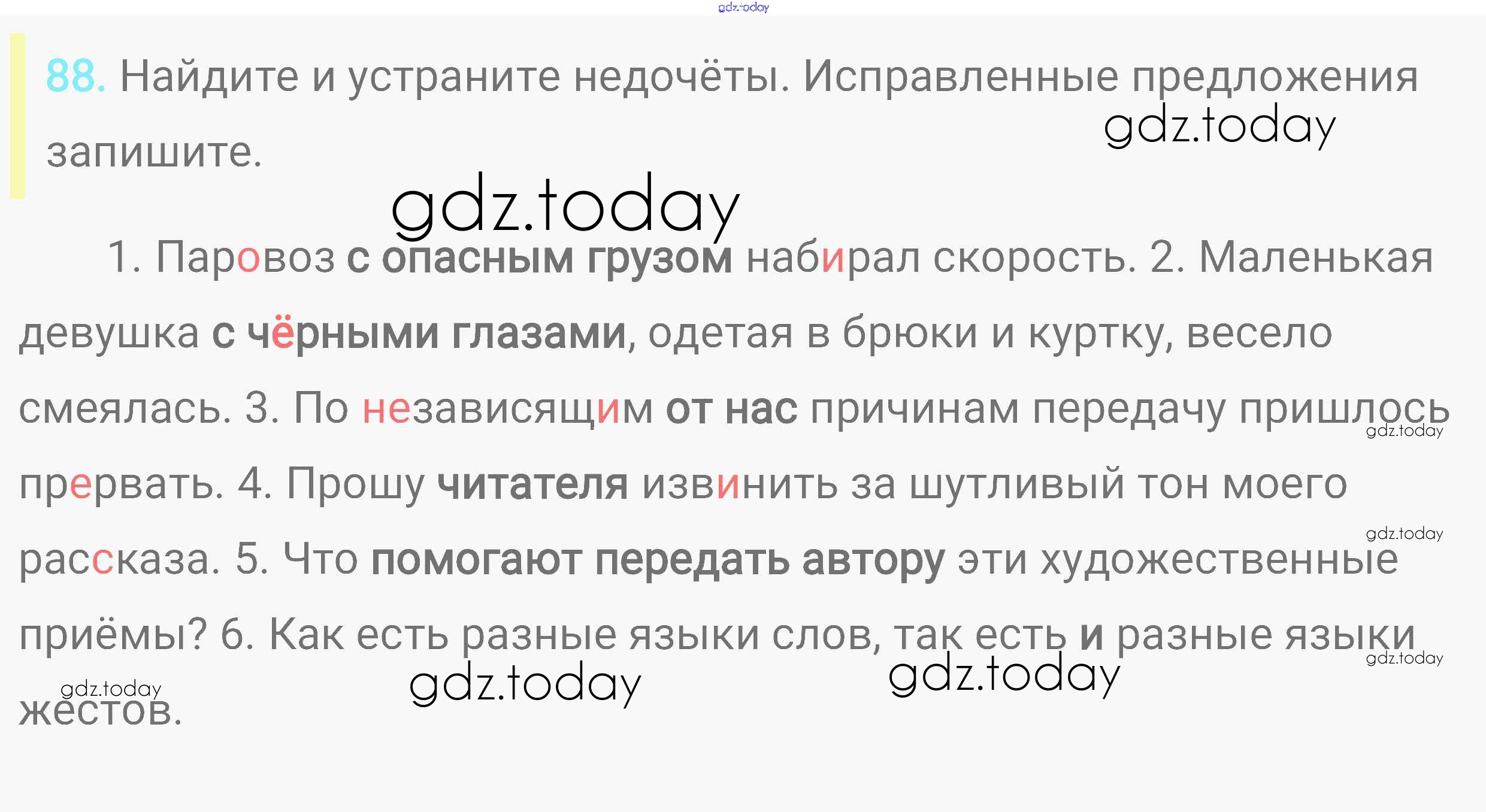 На страницах сайта gdz.today вы найдете учебный и вспомогательный материал, направленный на улучшения знаний школьной программы. ГДЗ - онлайн мир знаний Решение. Упражнения 88 Практике по Русскому языку для 8 класса Пичугов, Еремеева Дрофа, Дрофа Вертикаль 2016, 2022
