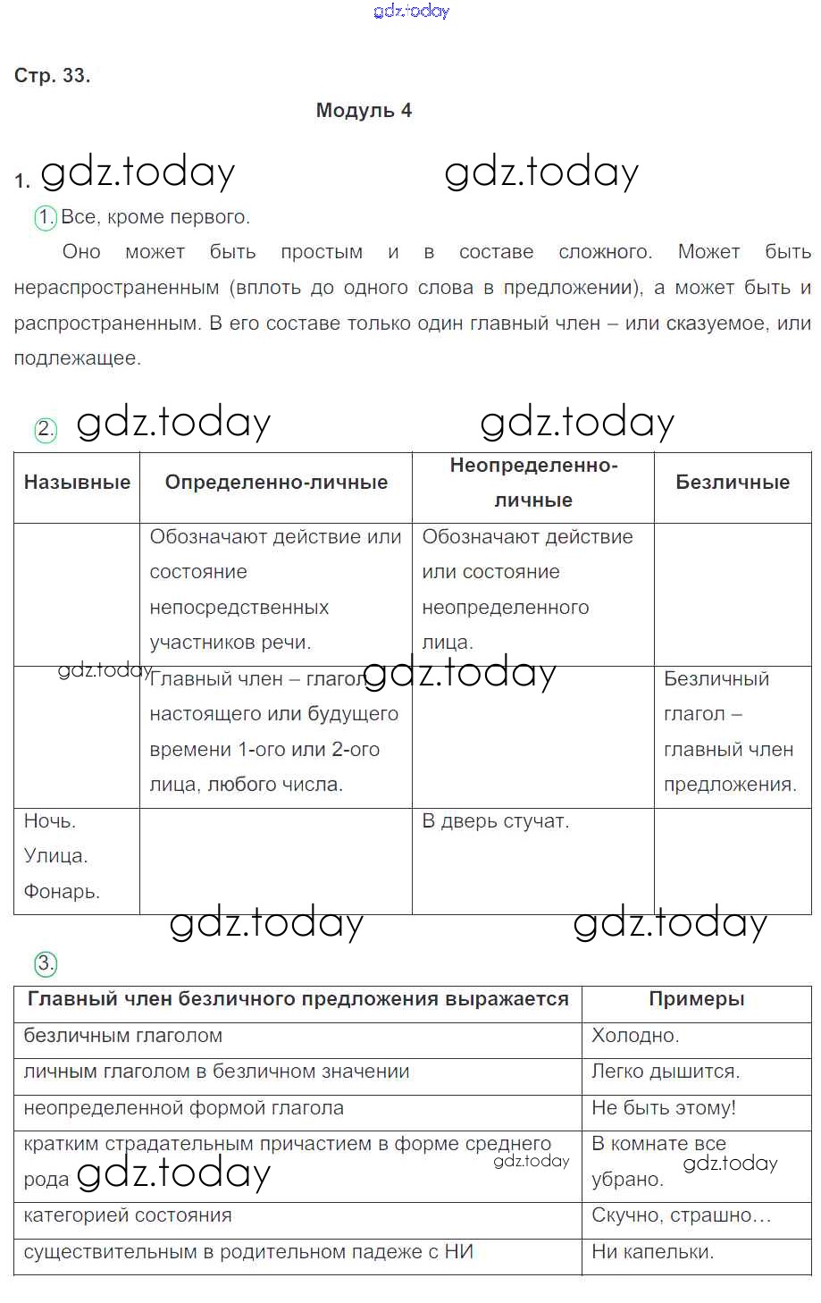 Ответы к Страницы (решение) 33 Рабочей тетради по Русскому языку для 8 класса Ерохина Экзамен УМК 2014