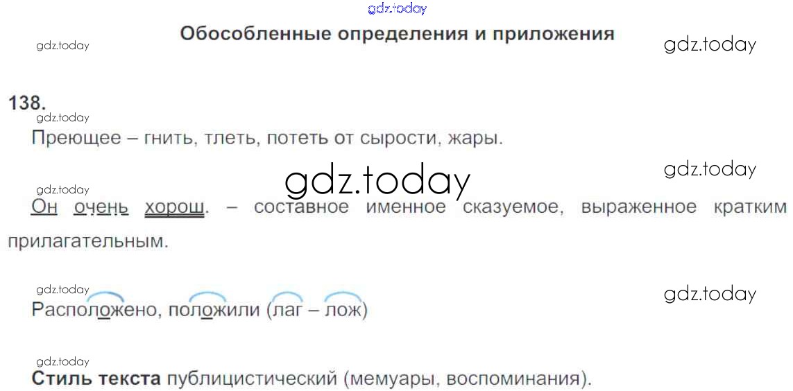 Ответы к Решение к упражнениям 138 Рабочей тетради по Русскому языку для 8 класса Кулаева Экзамен УМК 2015