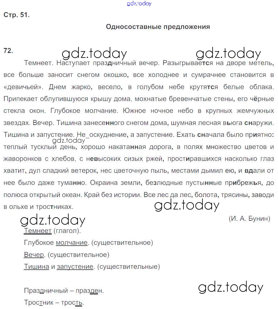 Ответы к Решение к упражнениям 72 Рабочей тетради по Русскому языку для 8 класса Кулаева Экзамен УМК 2015