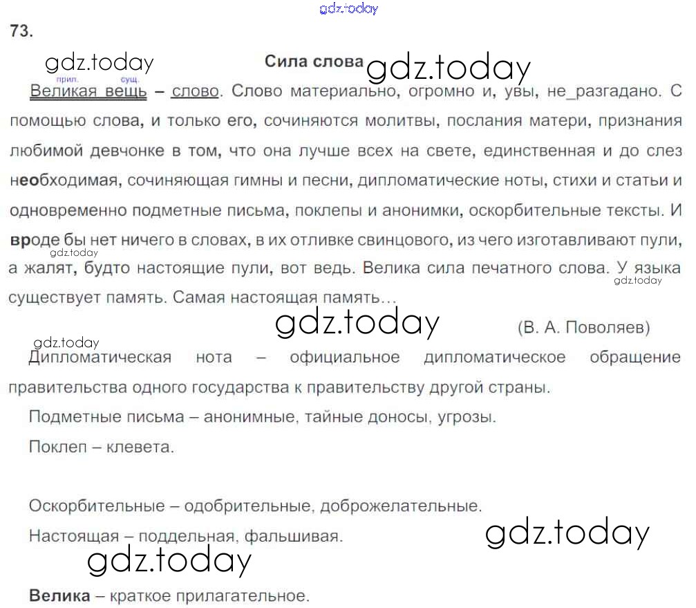 Ответы к Решение к упражнениям 73 Рабочей тетради по Русскому языку для 8 класса Кулаева Экзамен УМК 2015
