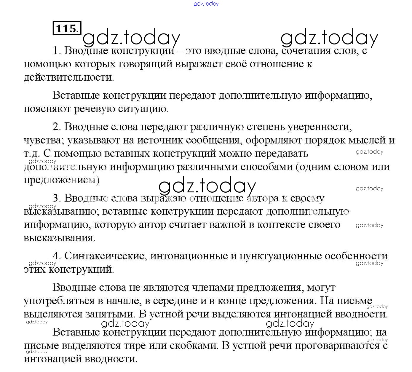 На страницах сайта gdz.today вы найдете учебный и вспомогательный материал, направленный на улучшения знаний школьной программы. ГДЗ - онлайн мир знаний Решение к упражнениям 115 Рабочей тетради по Русскому языку для 8 класса Львов Экзамен УМК 2016
