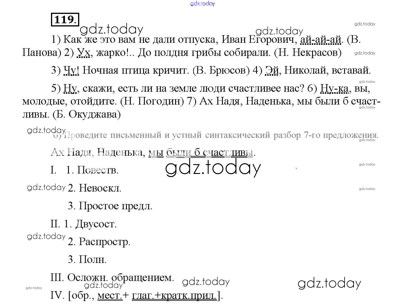 Ответы к Решение к упражнениям 119 Рабочей тетради по Русскому языку для 8 класса Львов Экзамен УМК 2016