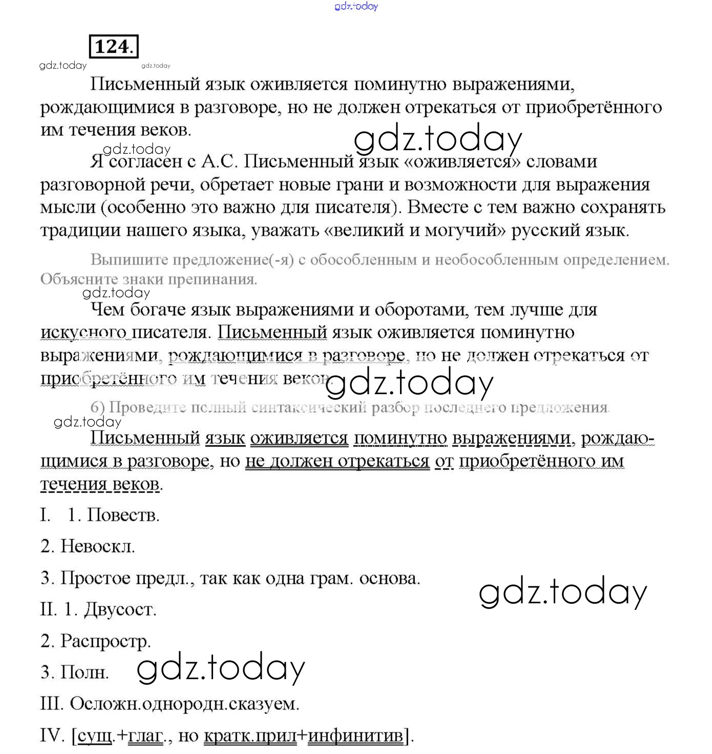 На страницах сайта gdz.today вы найдете учебный и вспомогательный материал, направленный на улучшения знаний школьной программы. ГДЗ - онлайн мир знаний Решение к упражнениям 124 Рабочей тетради по Русскому языку для 8 класса Львов Экзамен УМК 2016