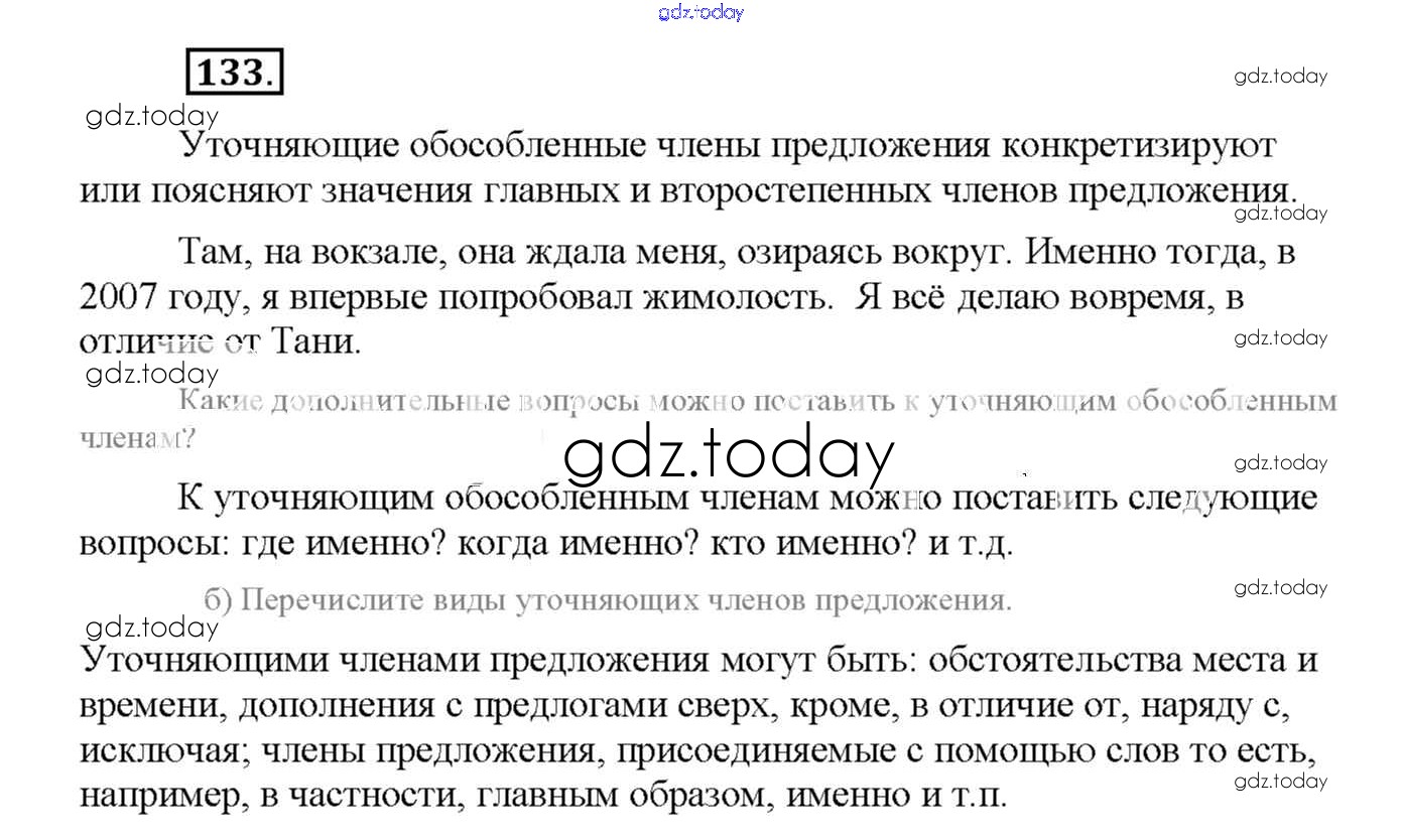 На страницах сайта gdz.today вы найдете учебный и вспомогательный материал, направленный на улучшения знаний школьной программы. ГДЗ - онлайн мир знаний Решение к упражнениям 133 Рабочей тетради по Русскому языку для 8 класса Львов Экзамен УМК 2016