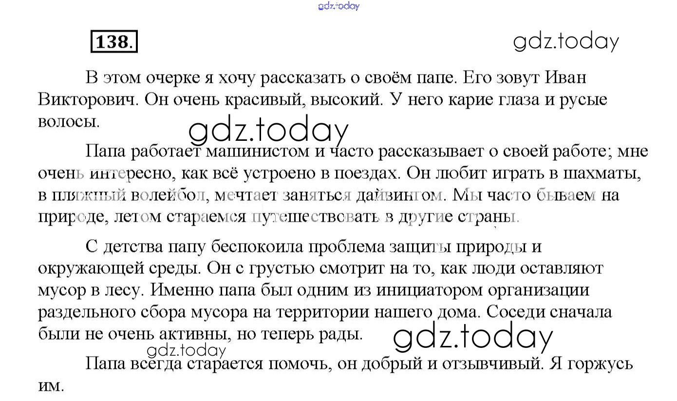 На страницах сайта gdz.today вы найдете учебный и вспомогательный материал, направленный на улучшения знаний школьной программы. ГДЗ - онлайн мир знаний Решение к упражнениям 138 Рабочей тетради по Русскому языку для 8 класса Львов Экзамен УМК 2016