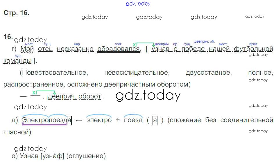 На страницах сайта gdz.today вы найдете учебный и вспомогательный материал, направленный на улучшения знаний школьной программы. ГДЗ - онлайн мир знаний Решение к упражнениям 16 Рабочей тетради по Русскому языку для 8 класса Львов Экзамен УМК 2016