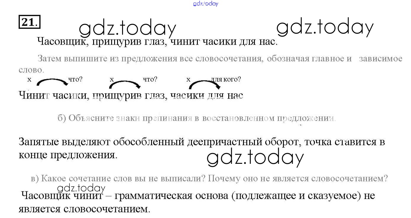На страницах сайта gdz.today вы найдете учебный и вспомогательный материал, направленный на улучшения знаний школьной программы. ГДЗ - онлайн мир знаний Решение к упражнениям 21 Рабочей тетради по Русскому языку для 8 класса Львов Экзамен УМК 2016
