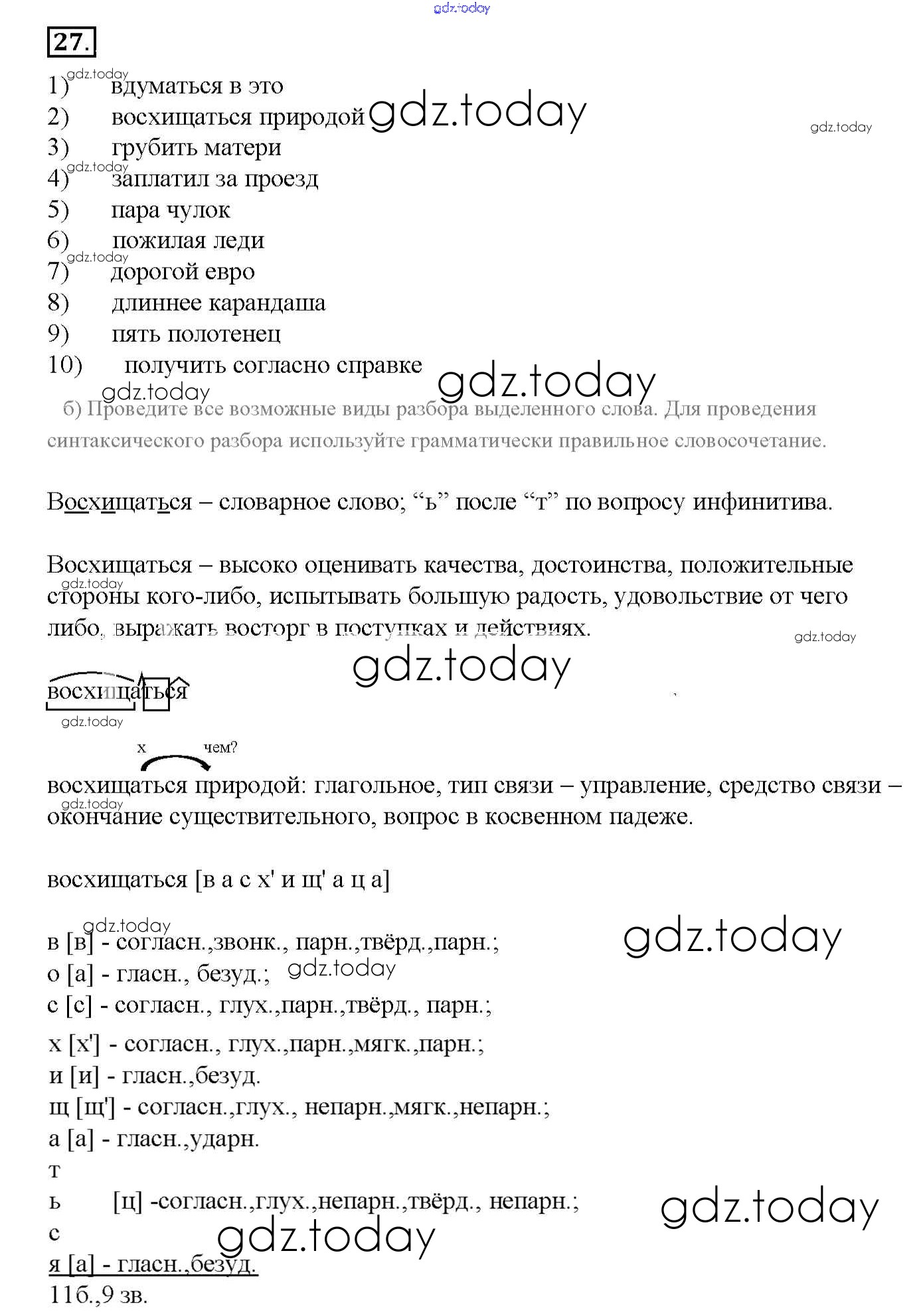 На страницах сайта gdz.today вы найдете учебный и вспомогательный материал, направленный на улучшения знаний школьной программы. ГДЗ - онлайн мир знаний Решение к упражнениям 27 Рабочей тетради по Русскому языку для 8 класса Львов Экзамен УМК 2016