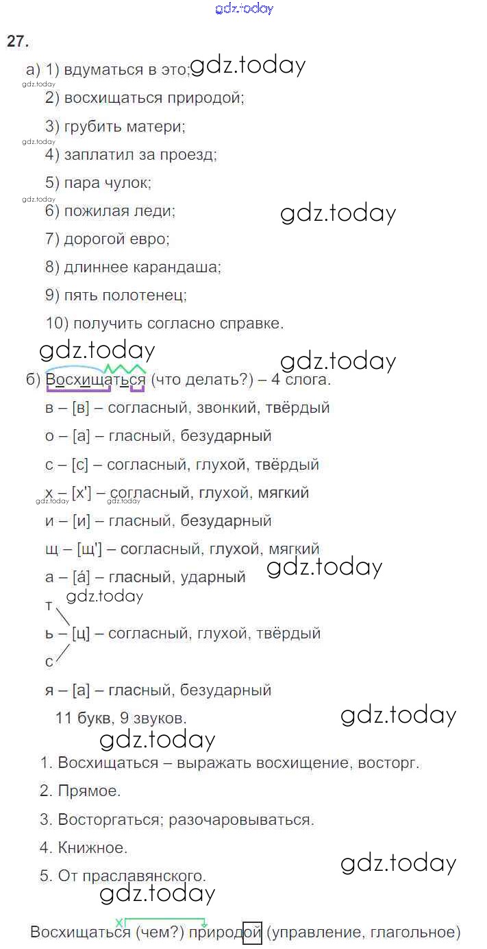 Ответы к Решение к упражнениям 27 Рабочей тетради по Русскому языку для 8 класса Львов Экзамен УМК 2016