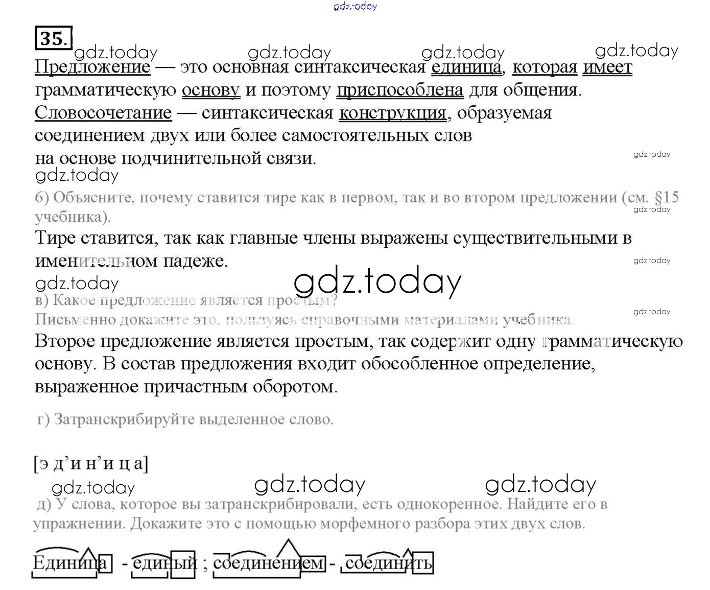 На страницах сайта gdz.today вы найдете учебный и вспомогательный материал, направленный на улучшения знаний школьной программы. ГДЗ - онлайн мир знаний Решение к упражнениям 35 Рабочей тетради по Русскому языку для 8 класса Львов Экзамен УМК 2016
