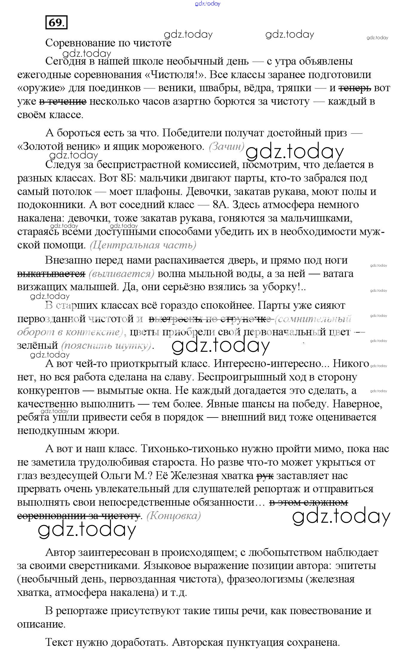 На страницах сайта gdz.today вы найдете учебный и вспомогательный материал, направленный на улучшения знаний школьной программы. ГДЗ - онлайн мир знаний Решение к упражнениям 69 Рабочей тетради по Русскому языку для 8 класса Львов Экзамен УМК 2016