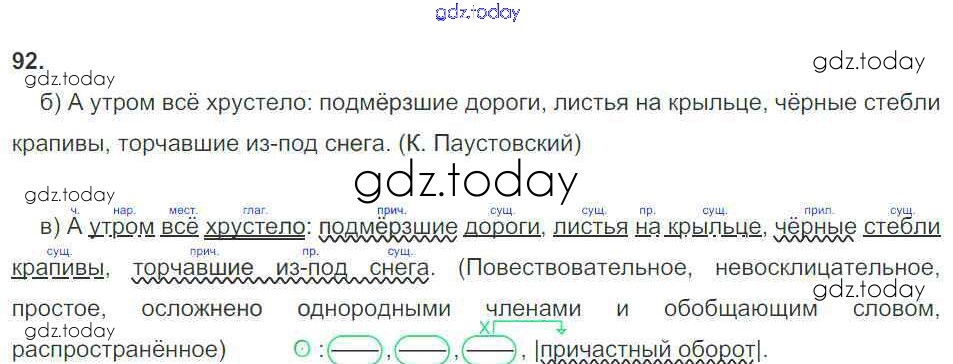 Ответы к Решение к упражнениям 92 Рабочей тетради по Русскому языку для 8 класса Львов Экзамен УМК 2016
