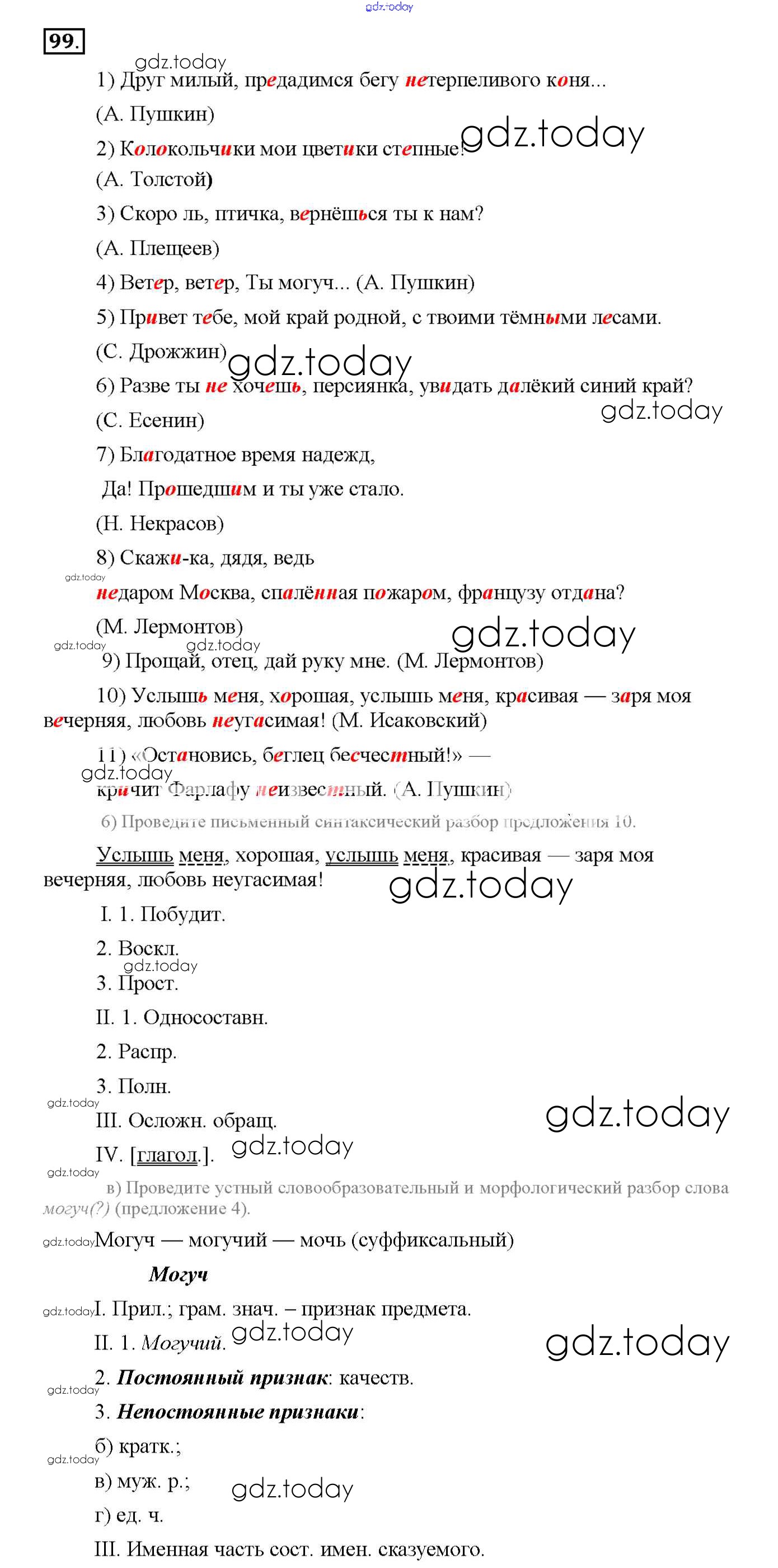 На страницах сайта gdz.today вы найдете учебный и вспомогательный материал, направленный на улучшения знаний школьной программы. ГДЗ - онлайн мир знаний Решение к упражнениям 99 Рабочей тетради по Русскому языку для 8 класса Львов Экзамен УМК 2016
