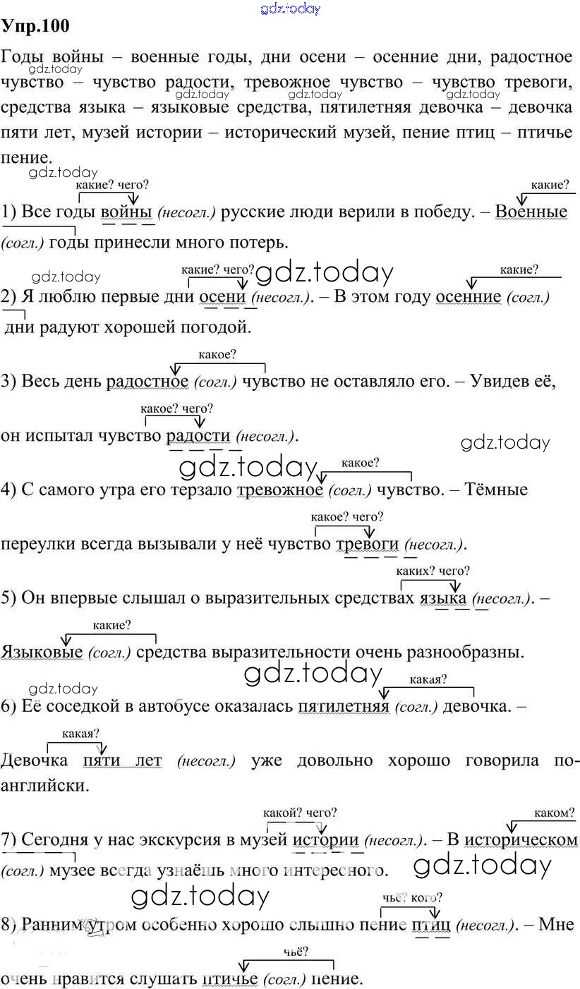 Ответы к Решение к упражнениям 100 Учебнику по Русскому языку для 8 класса Разумовская, Львова Дрофа Вертикаль 2013