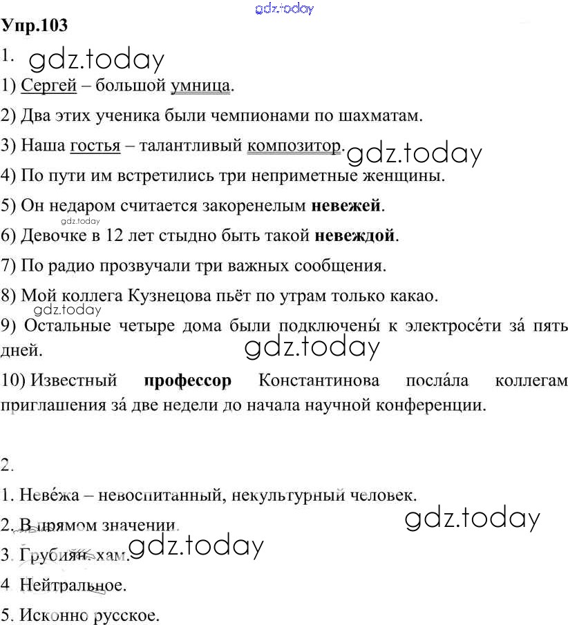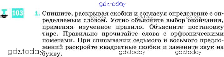 На страницах сайта gdz.today вы найдете учебный и вспомогательный материал, направленный на улучшения знаний школьной программы. ГДЗ - онлайн мир знаний Решение к упражнениям 103 Учебнику по Русскому языку для 8 класса Разумовская, Львова Дрофа Вертикаль 2013