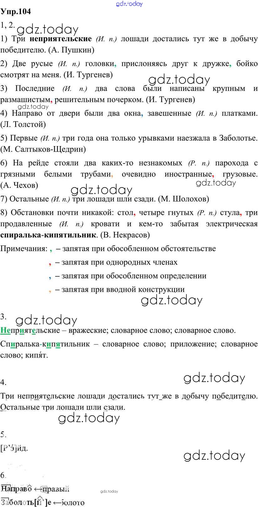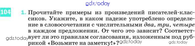 На страницах сайта gdz.today вы найдете учебный и вспомогательный материал, направленный на улучшения знаний школьной программы. ГДЗ - онлайн мир знаний Решение к упражнениям 104 Учебнику по Русскому языку для 8 класса Разумовская, Львова Дрофа Вертикаль 2013
