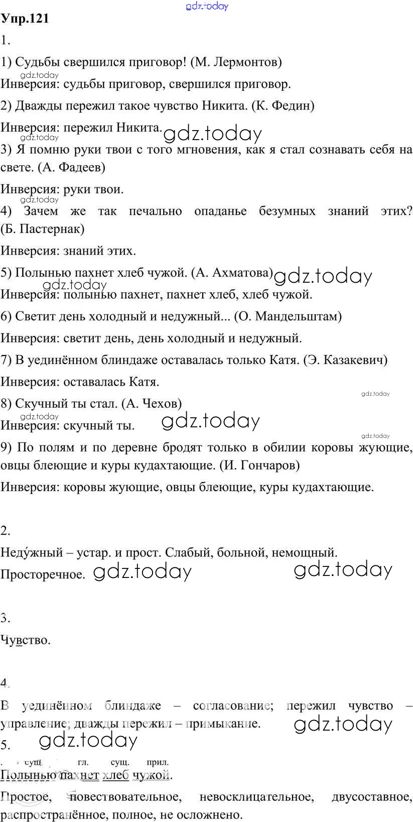 Ответы к Решение к упражнениям 121 Учебнику по Русскому языку для 8 класса Разумовская, Львова Дрофа Вертикаль 2013