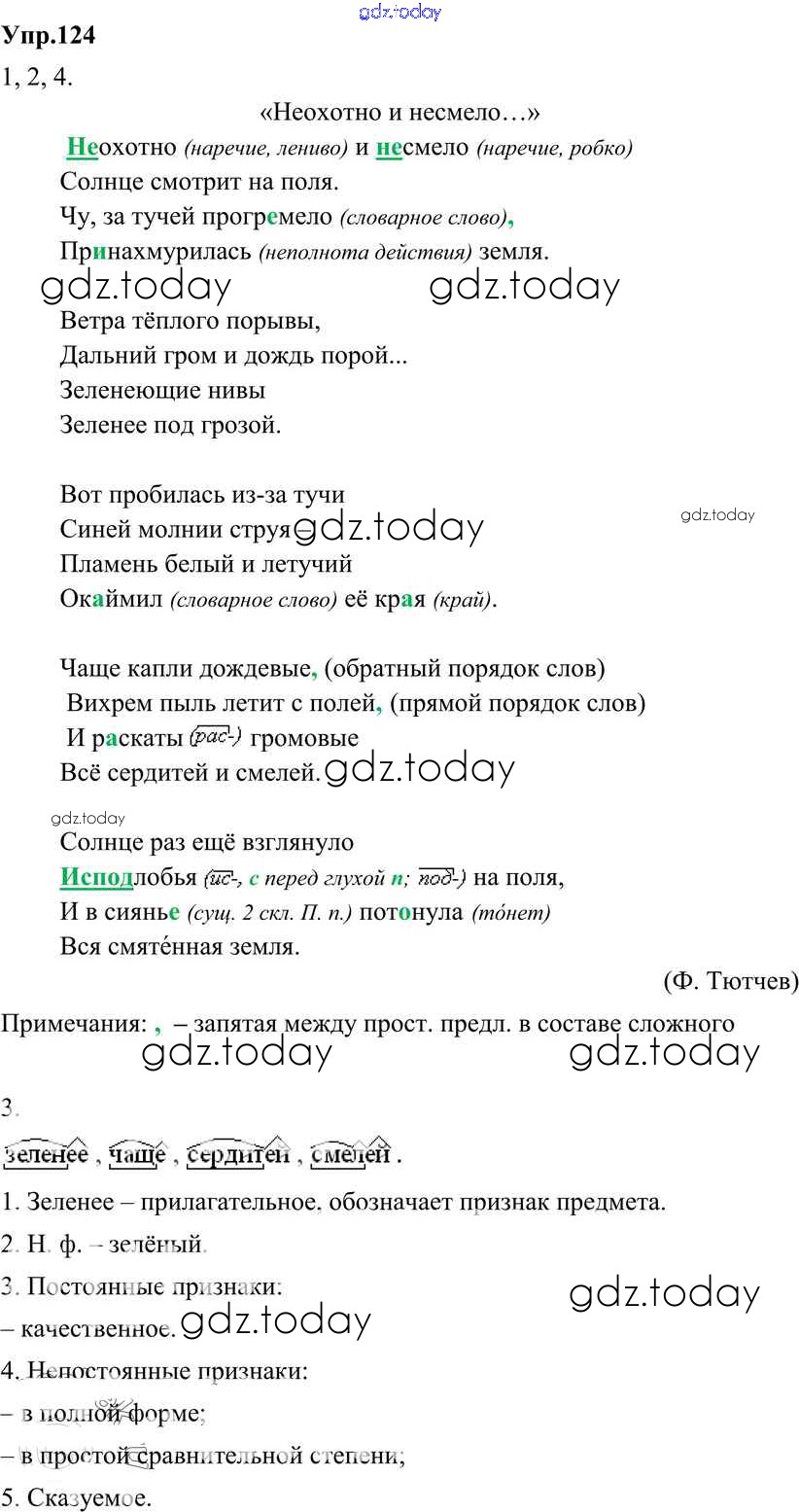 Ответы к Решение к упражнениям 124 Учебнику по Русскому языку для 8 класса Разумовская, Львова Дрофа Вертикаль 2013