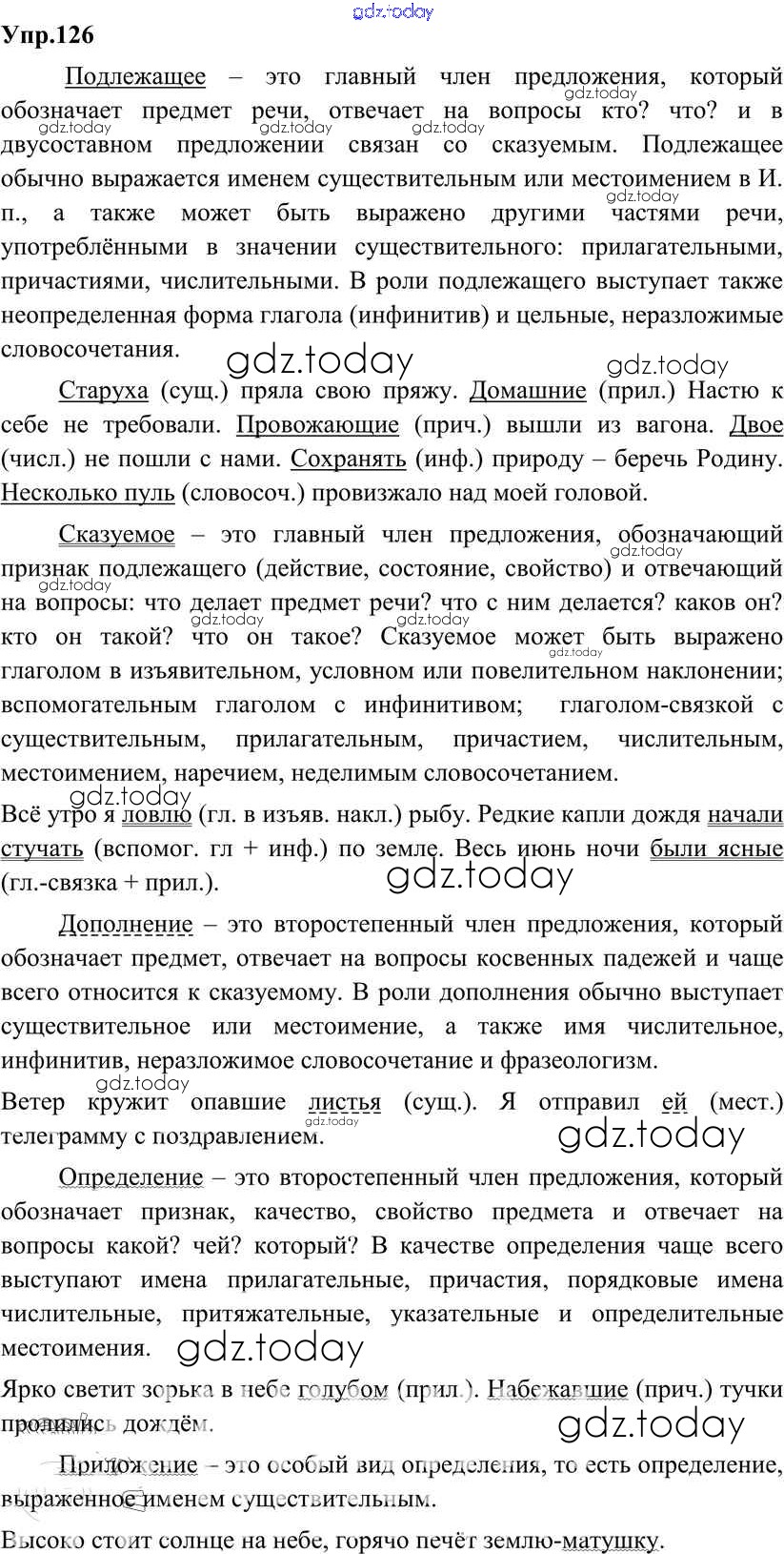 На страницах сайта gdz.today вы найдете учебный и вспомогательный материал, направленный на улучшения знаний школьной программы. ГДЗ - онлайн мир знаний Решение к упражнениям 126 Учебнику по Русскому языку для 8 класса Разумовская, Львова Дрофа Вертикаль 2013