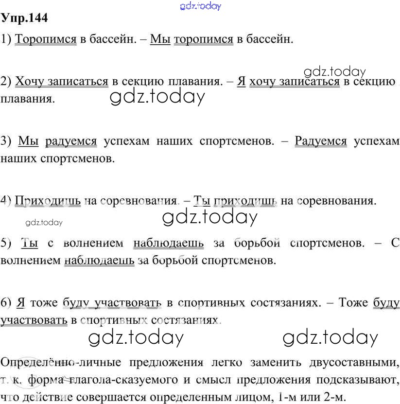 На страницах сайта gdz.today вы найдете учебный и вспомогательный материал, направленный на улучшения знаний школьной программы. ГДЗ - онлайн мир знаний Решение к упражнениям 144 Учебнику по Русскому языку для 8 класса Разумовская, Львова Дрофа Вертикаль 2013