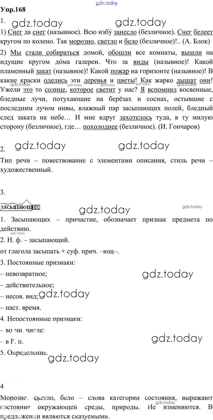 На страницах сайта gdz.today вы найдете учебный и вспомогательный материал, направленный на улучшения знаний школьной программы. ГДЗ - онлайн мир знаний Решение к упражнениям 168 Учебнику по Русскому языку для 8 класса Разумовская, Львова Дрофа Вертикаль 2013