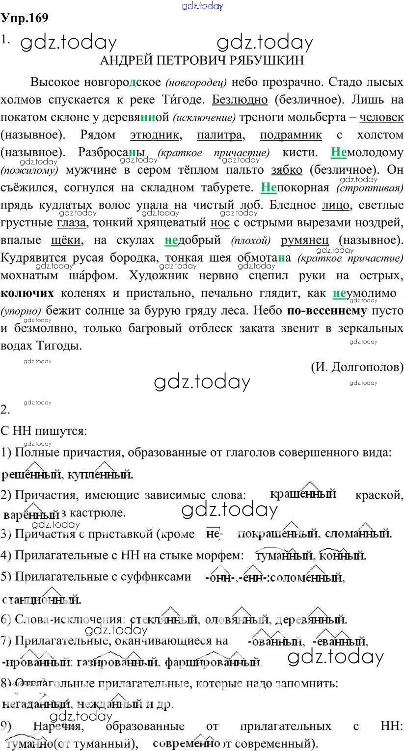 На страницах сайта gdz.today вы найдете учебный и вспомогательный материал, направленный на улучшения знаний школьной программы. ГДЗ - онлайн мир знаний Решение к упражнениям 169 Учебнику по Русскому языку для 8 класса Разумовская, Львова Дрофа Вертикаль 2013