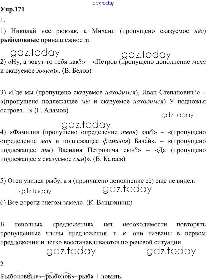 На страницах сайта gdz.today вы найдете учебный и вспомогательный материал, направленный на улучшения знаний школьной программы. ГДЗ - онлайн мир знаний Решение к упражнениям 171 Учебнику по Русскому языку для 8 класса Разумовская, Львова Дрофа Вертикаль 2013